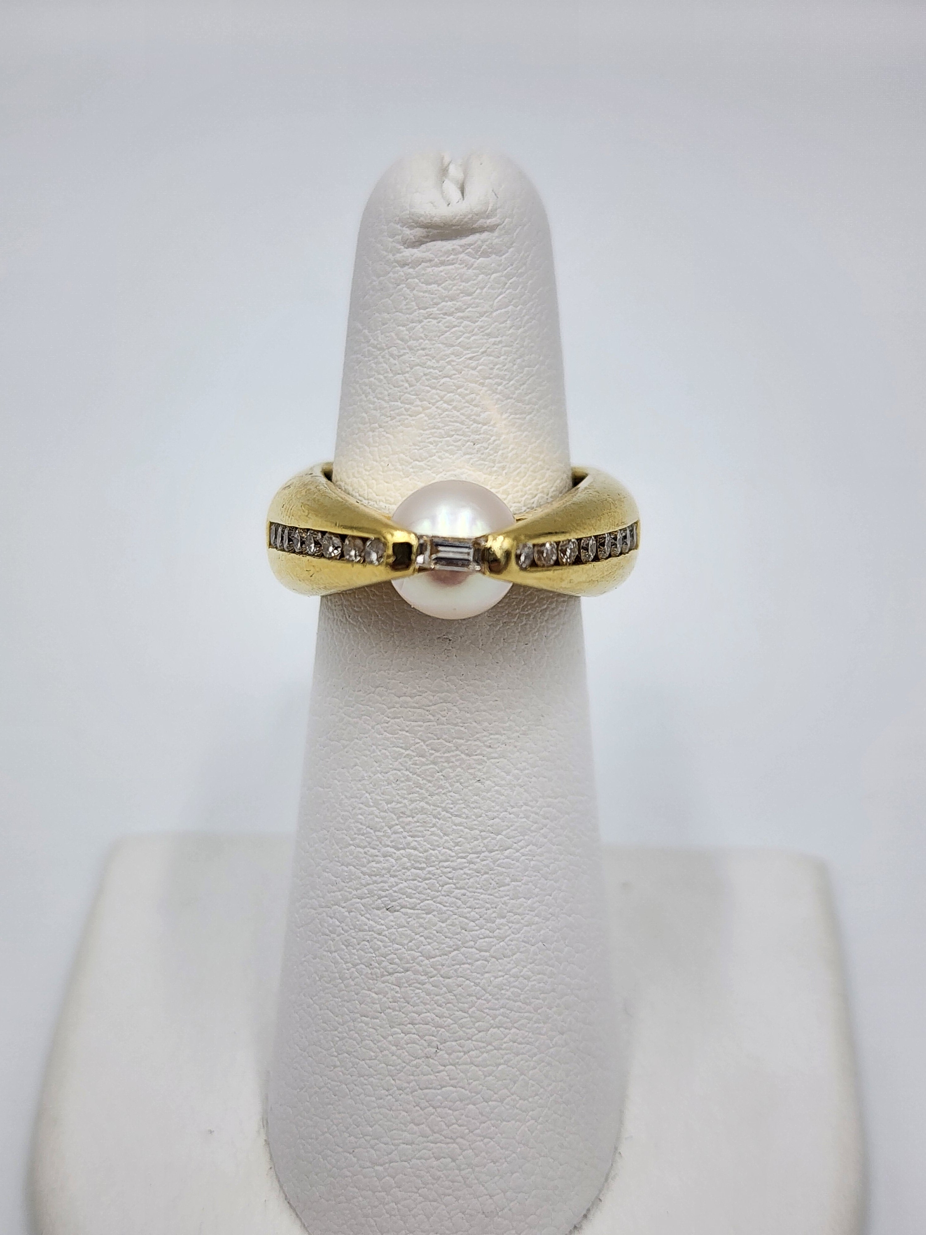e387 Lovely Ladies 14kt Yellow Gold Freshwater Pearl and Diamond Ring