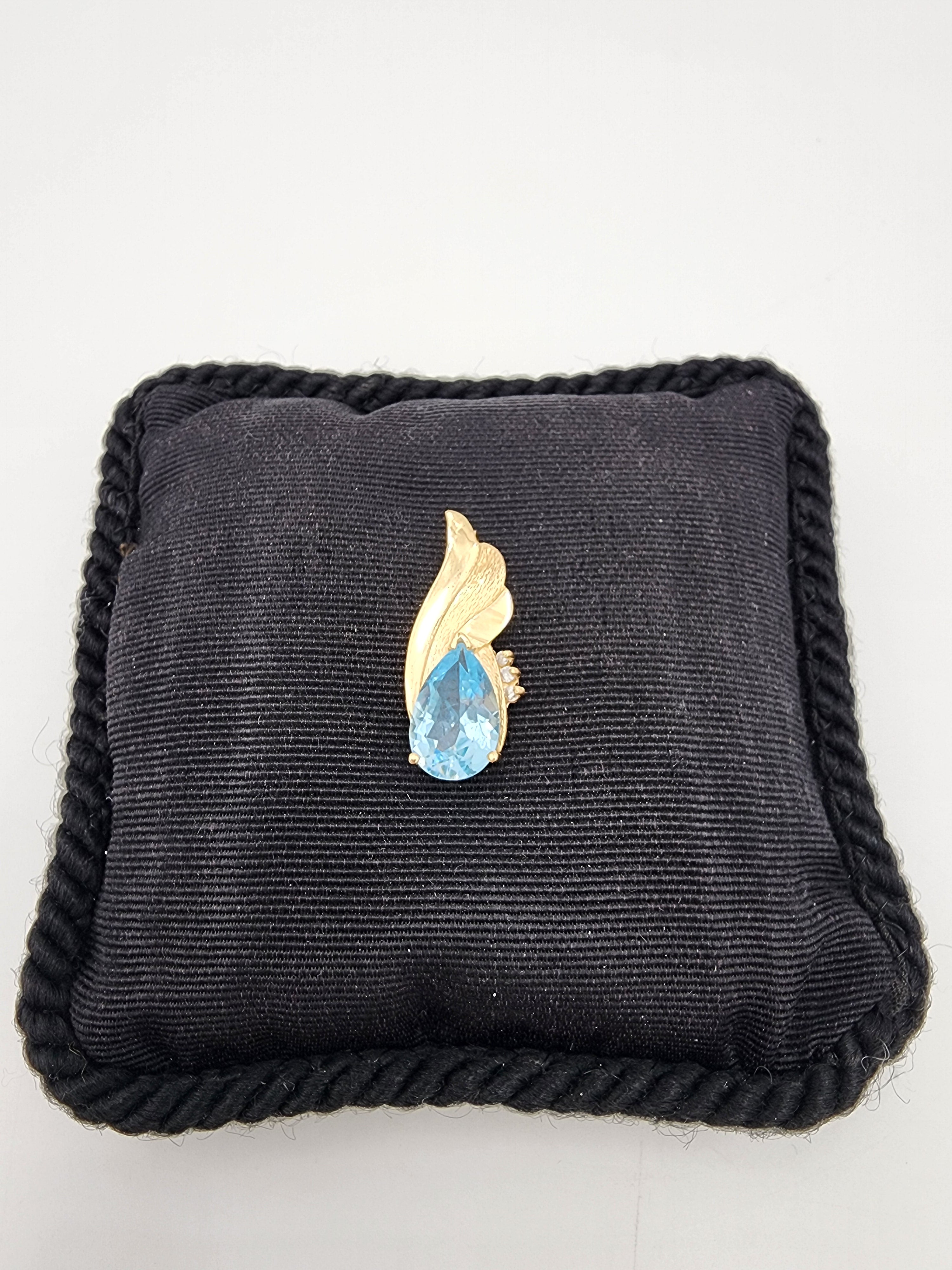 m716 Lovely Vintage Ladies 14kt Yellow Gold Aquamarine and Diamond Pendant