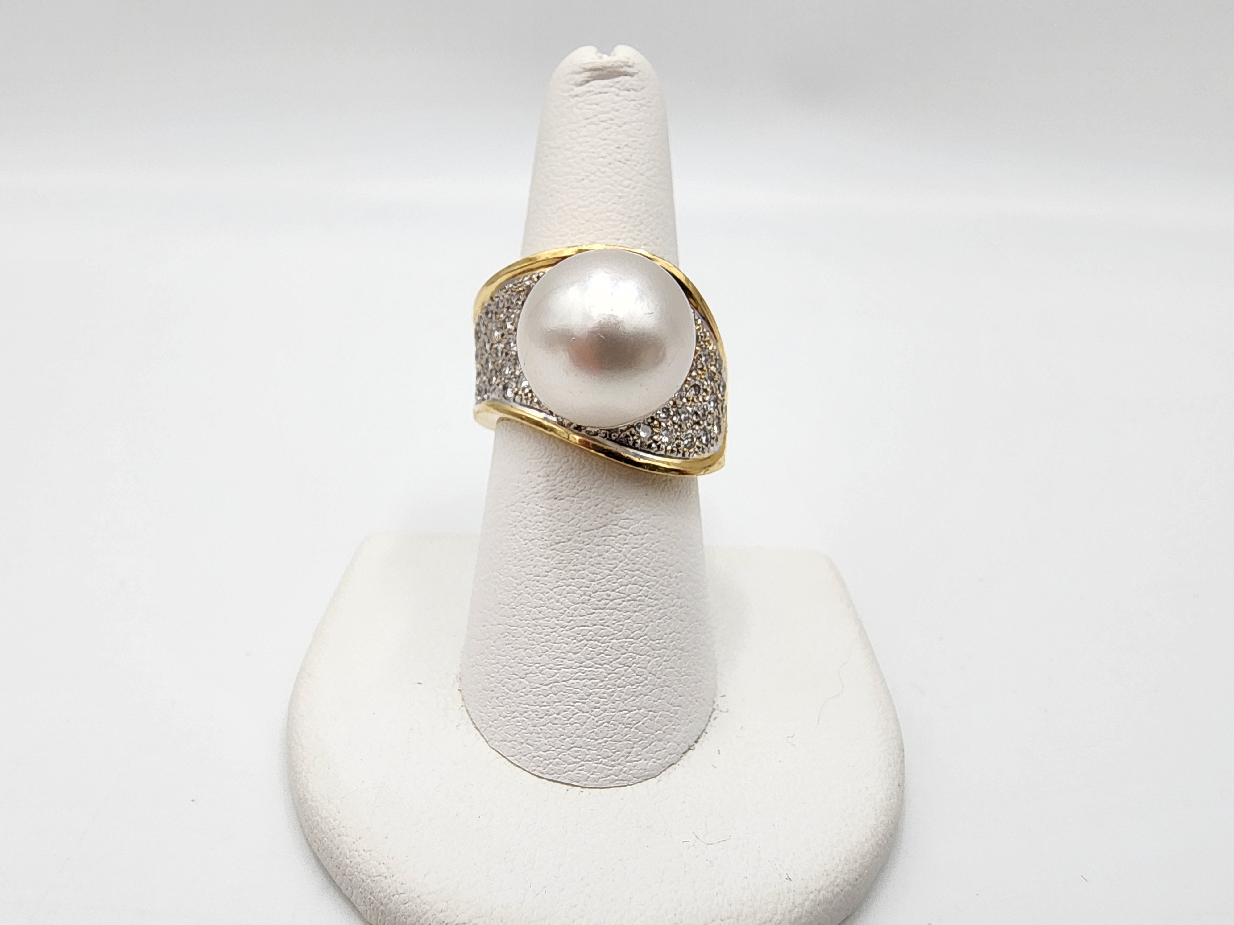 e388 Unique 18kt Yellow Gold Diamond and Pearl Ring