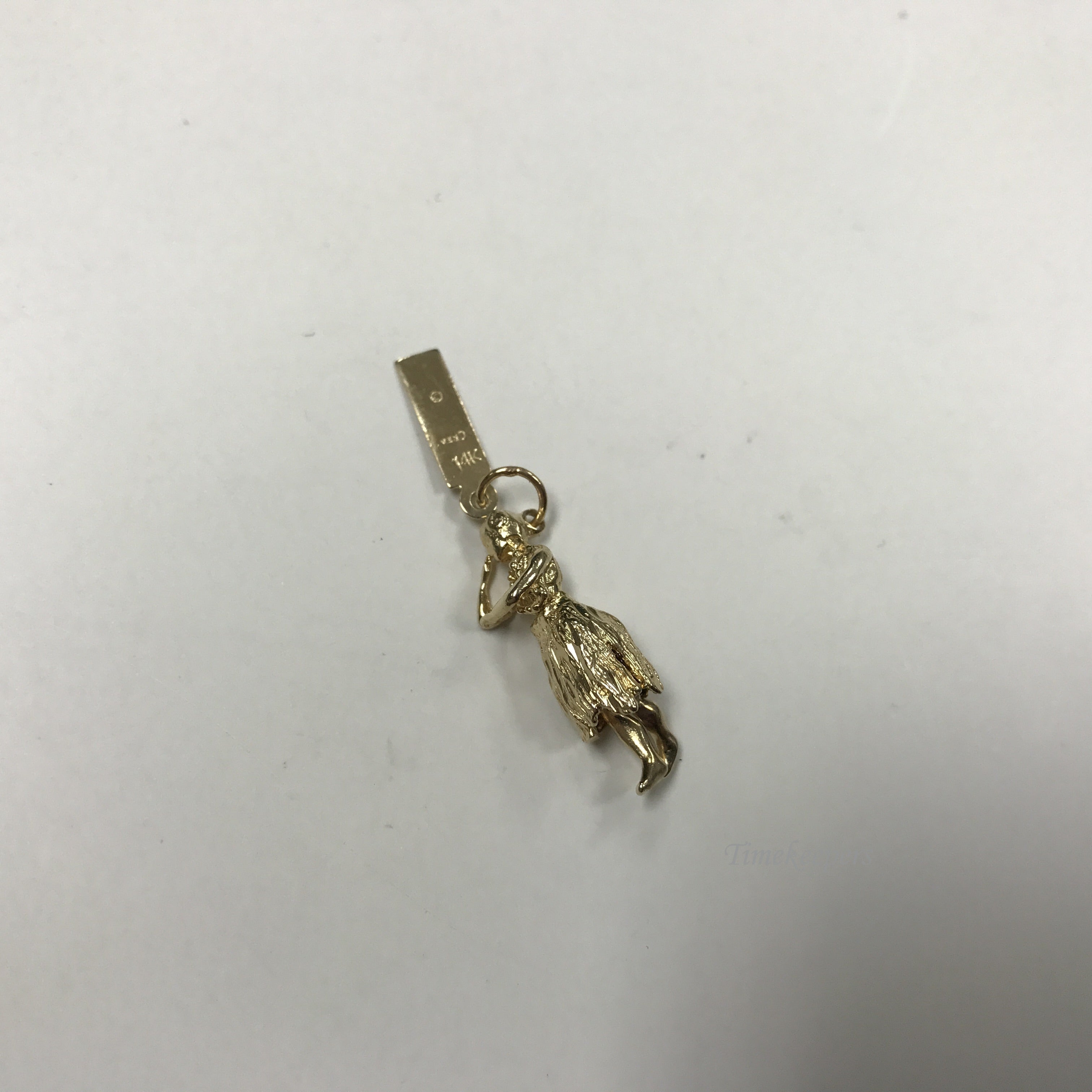 d437 Vintage Original 14K Yellow Gold Dancing Hawaiian Girl Charm Pendant
