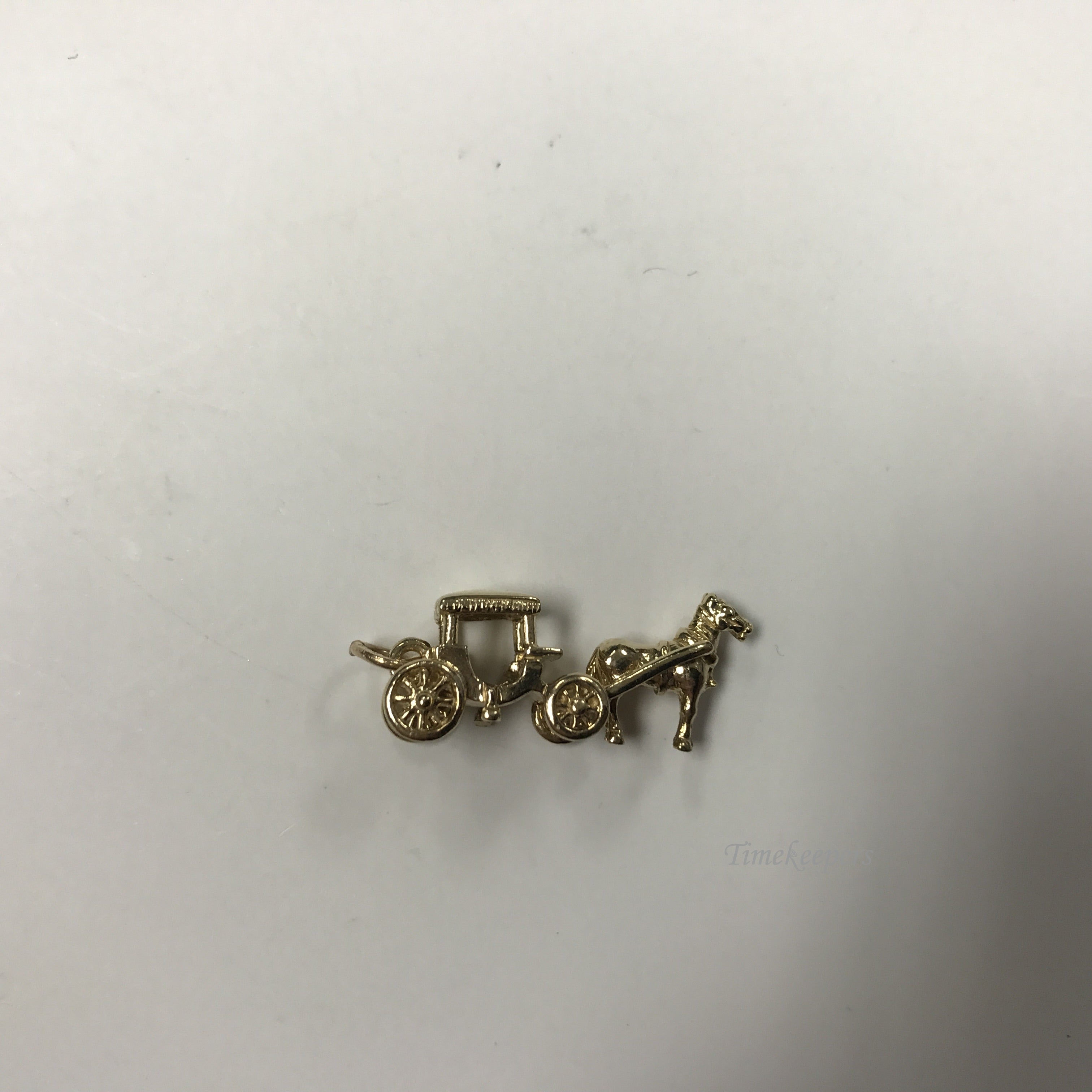 d444 Vintage Original 10K Yellow Gold Horse & Carriage Charm Pendant
