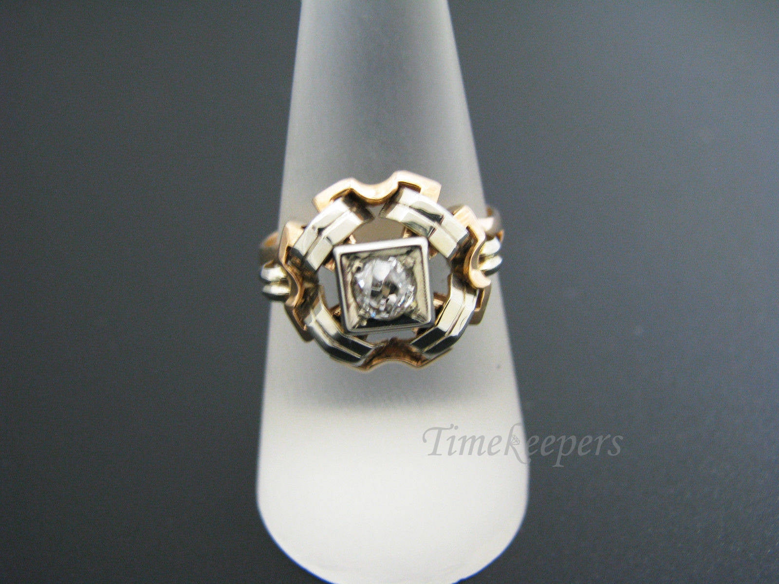 a843 Vintage Solitaire Diamond Ring 18k Yellow Gold White Gold Accents Size 8