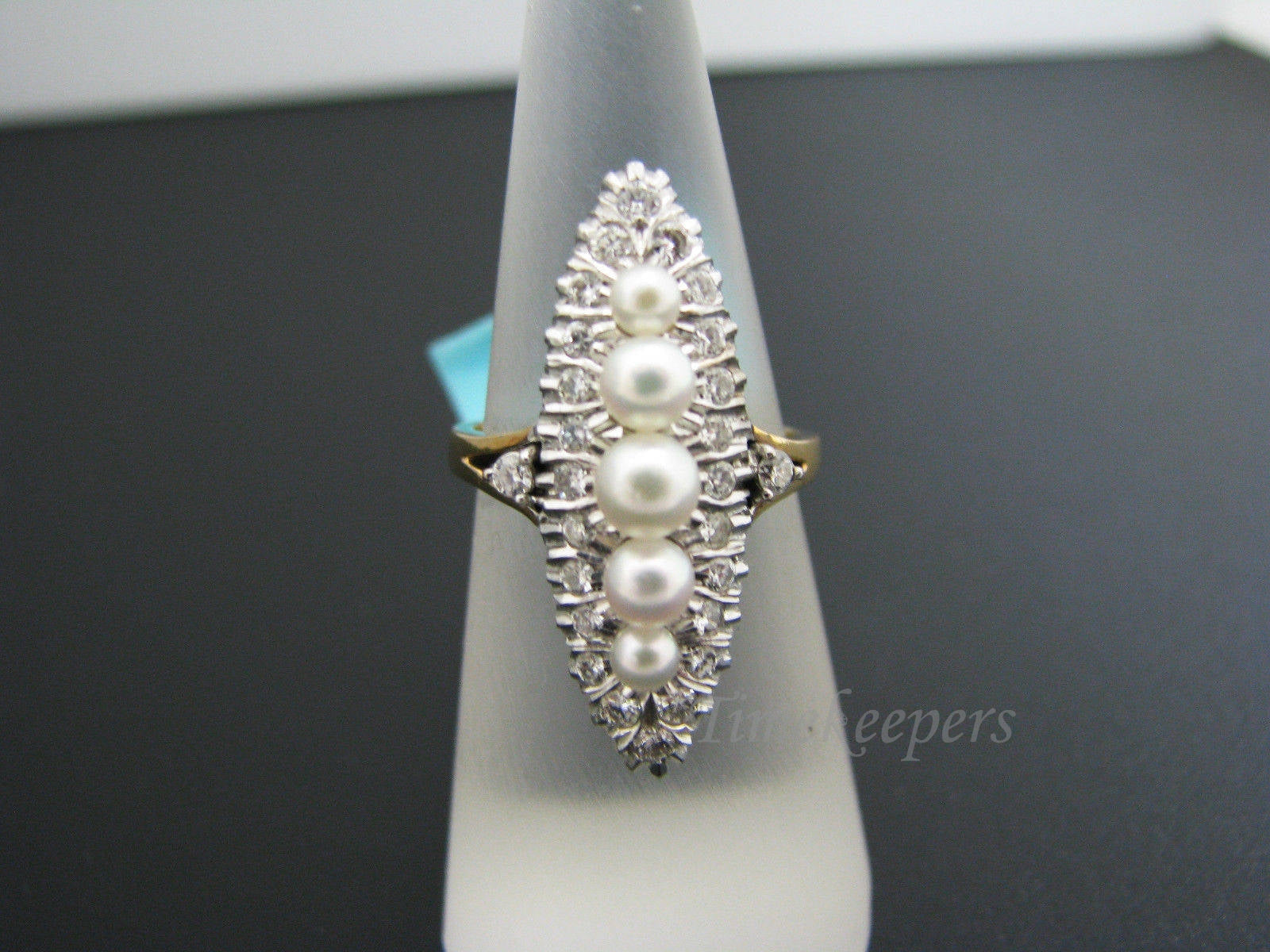 c504 Stunning Vintage Ring with Center Diamond and Seed Pearls in 10k YG
