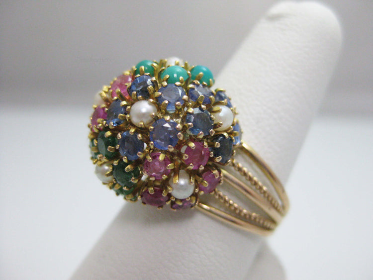 b842 Beautiful 14kt Yellow Gold Multicolored Gemstone Ring