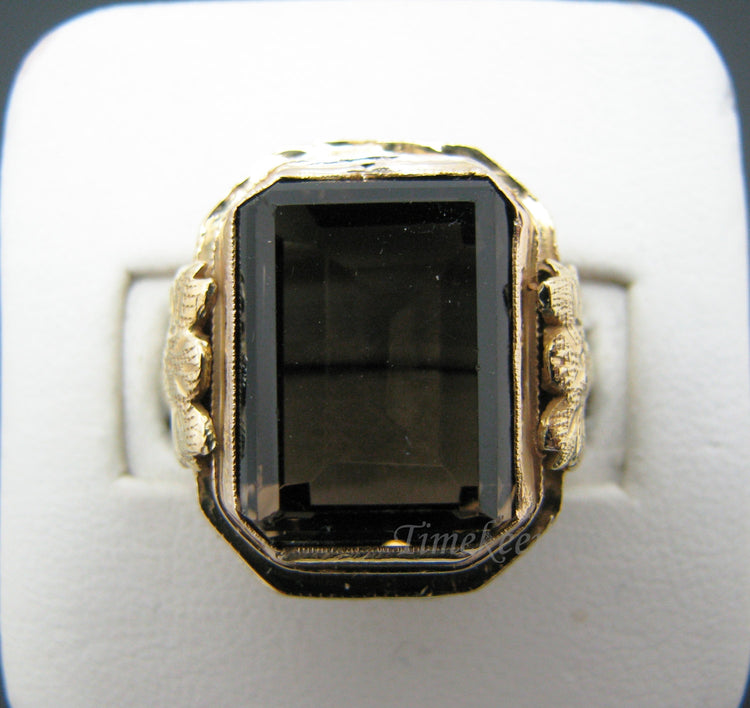 c308 Beautiful Vintage Ring Emerald Cut Smokey Quartz Mounted in 14k Yellow Gold