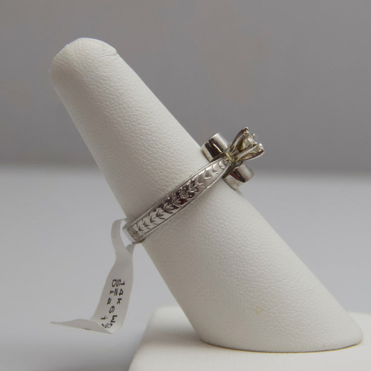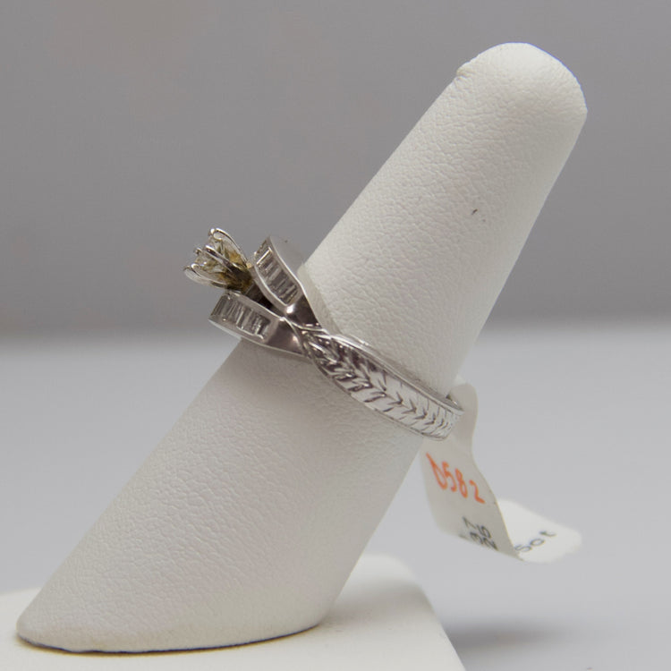 For sale: (1) d582 Uniquely Shaped 14kt White Gold Diamond Engagement Ring