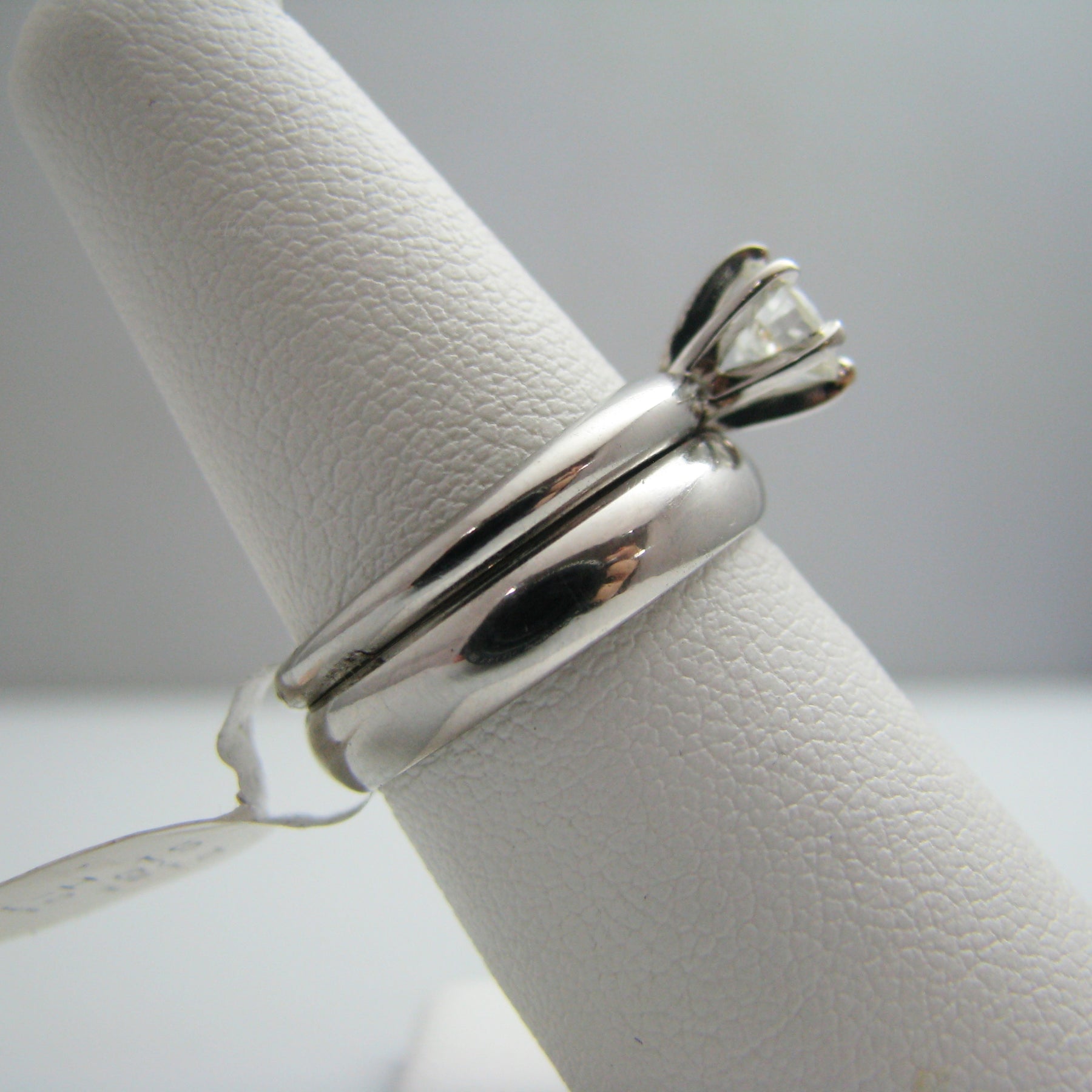 For sale: (1) d862 Simple Platinum Solitaire Diamond Wedding Ring Set