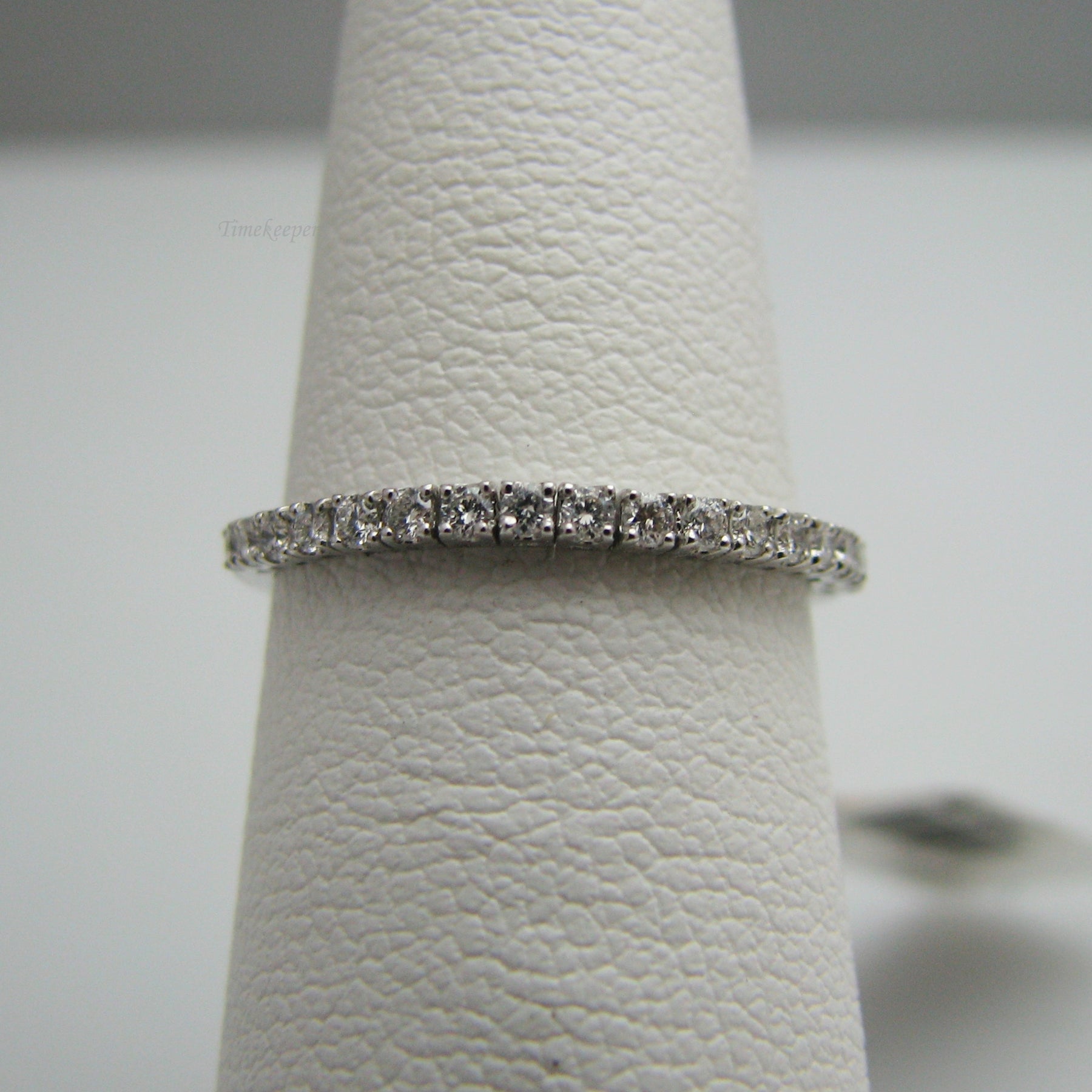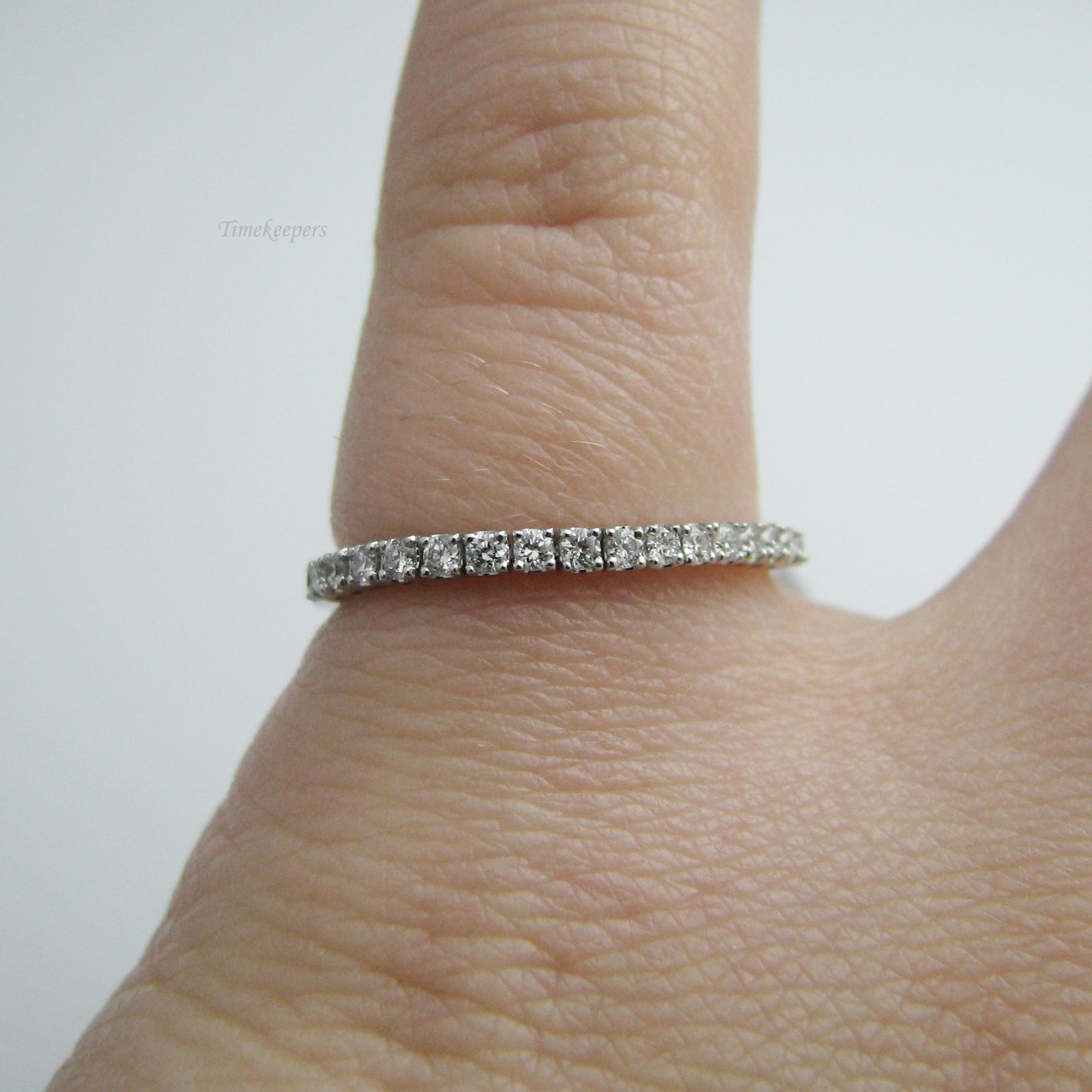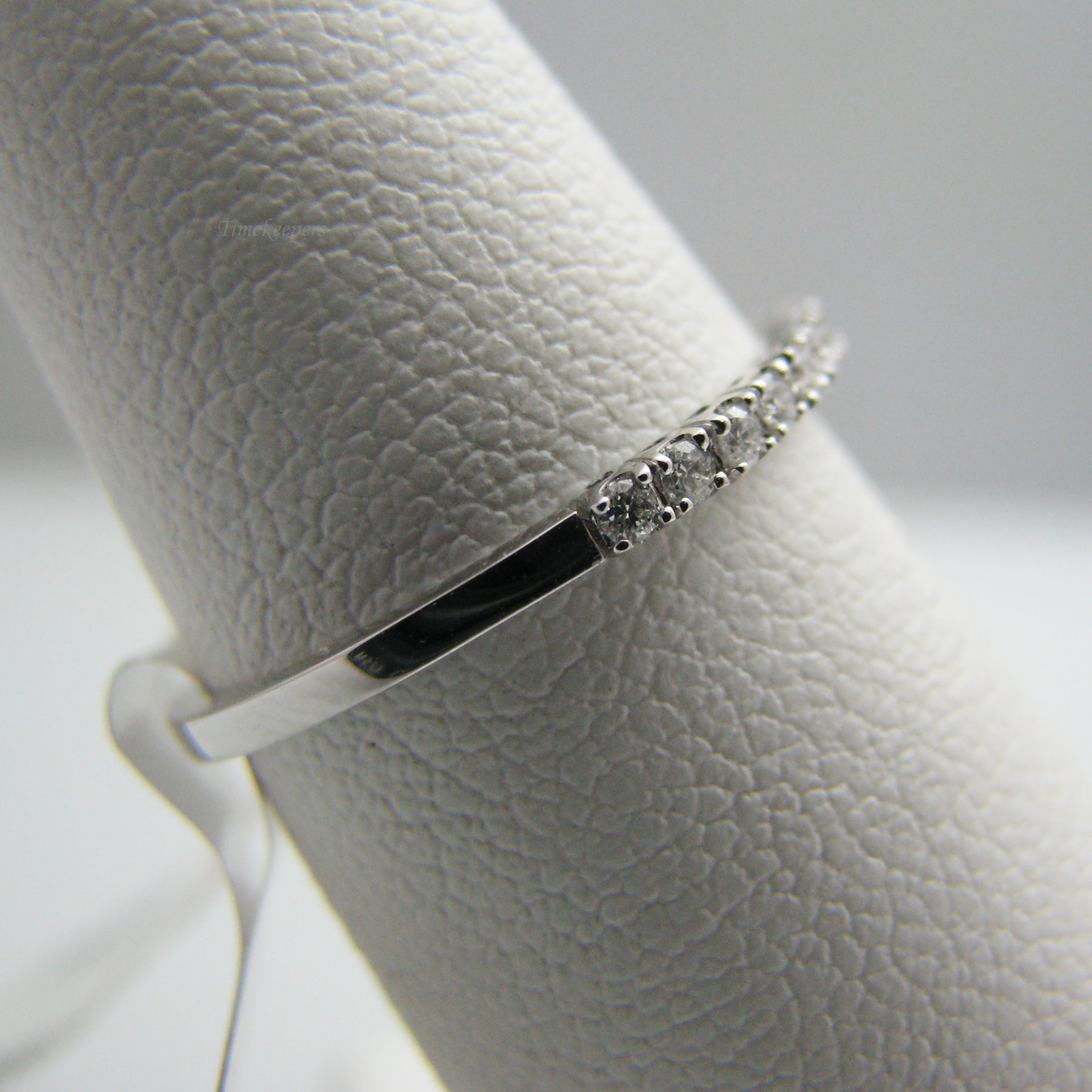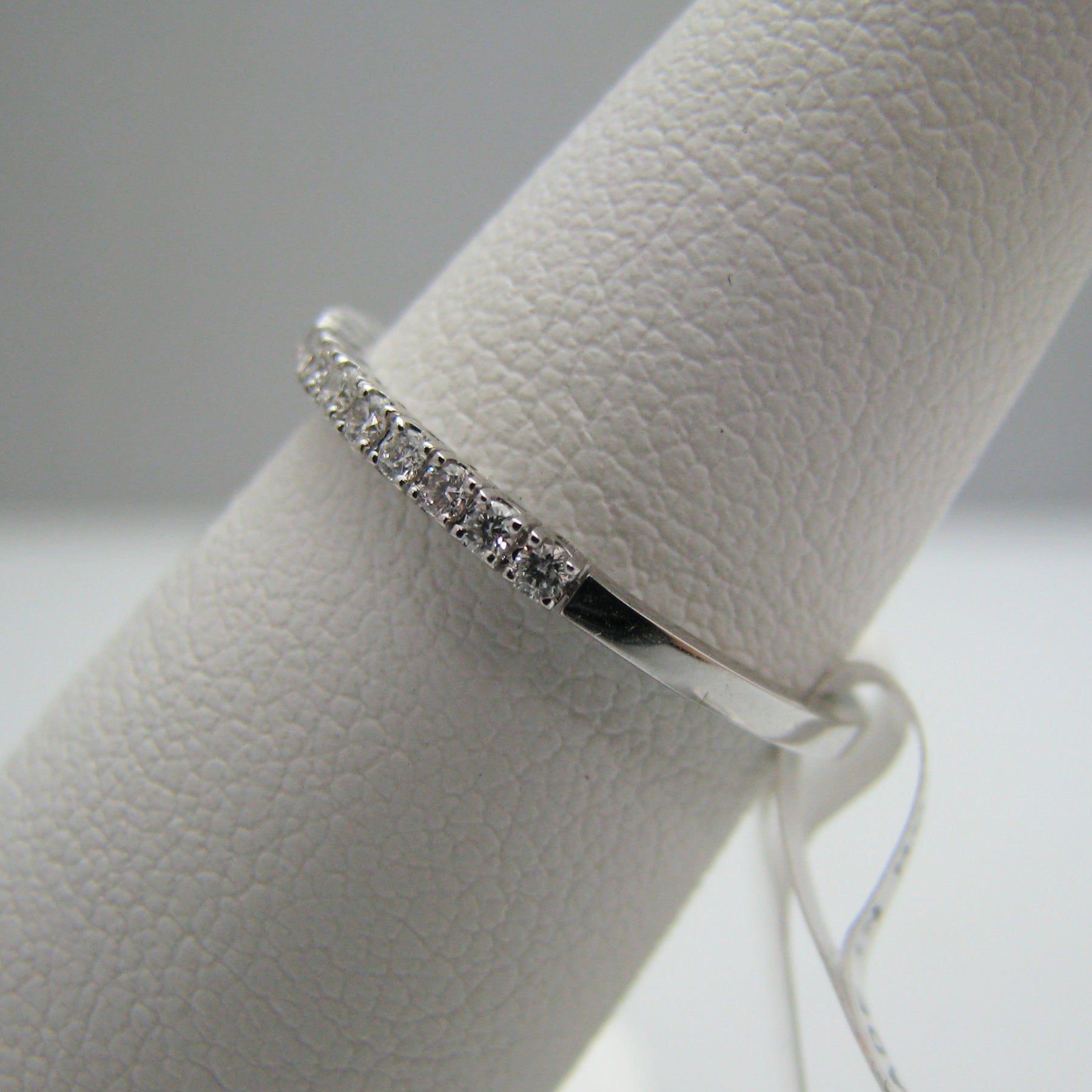 This ring contains 17 diamonds, all of which are round cut. It is not stamped, but has been tested for authenticity.