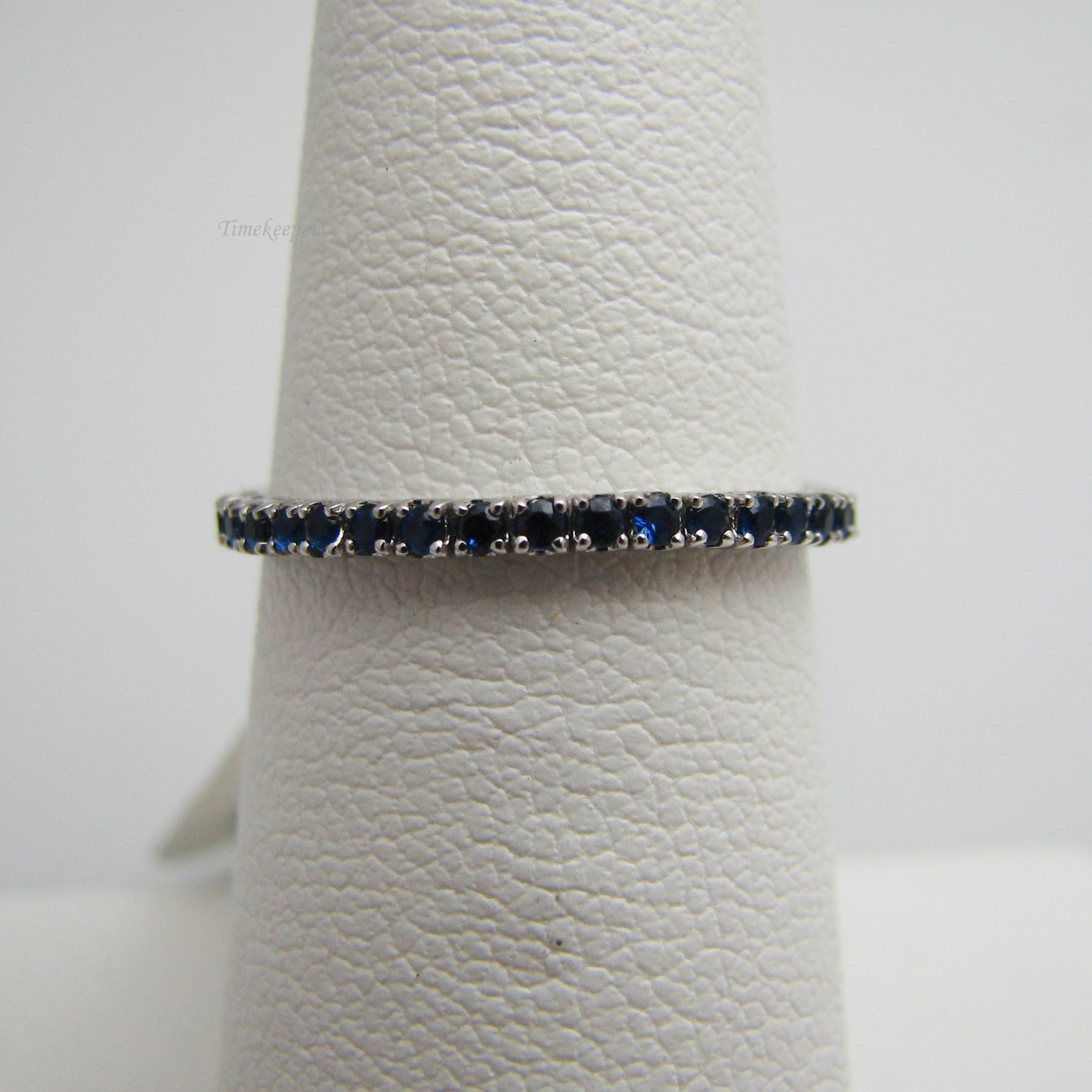 This ring contains 17 sapphires, all of which are round cut. The gems are approximately 1 mm round. It is not stamped, but has been tested for authenticity.