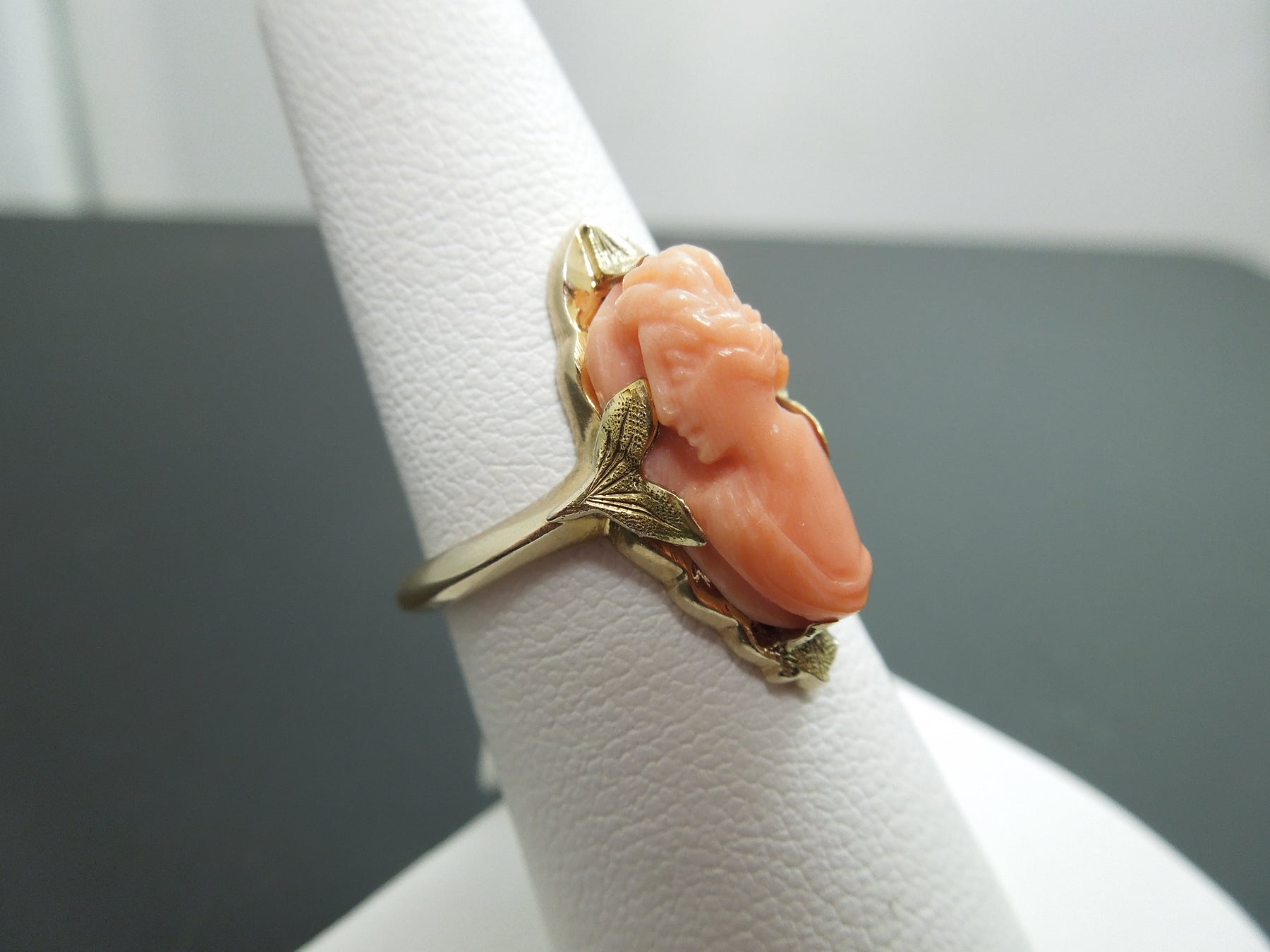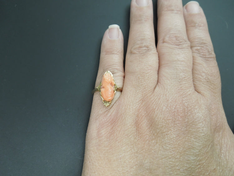 For Sale: g399 Classic Coral Cameo 10kt Yellow Gold Ring size 6.5