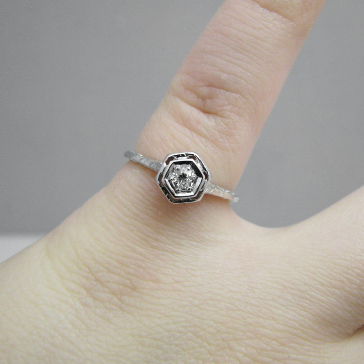 g136 Pretty 18k White Gold Diamond Engagement Ring