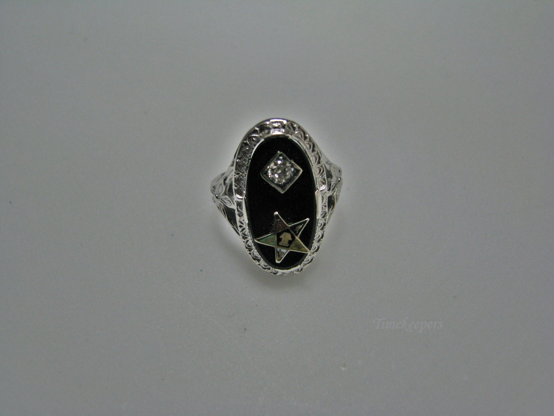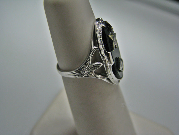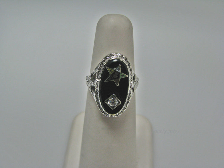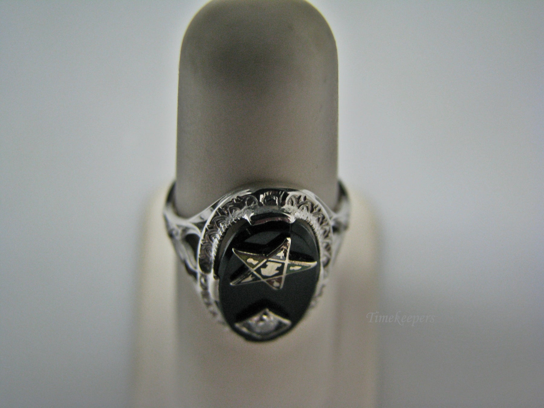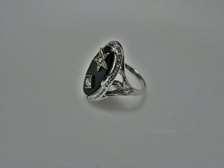 For Sale: (1) H126 Stunning Black Onyx with Diamond and Eastern Star Ring in 18k White Gold