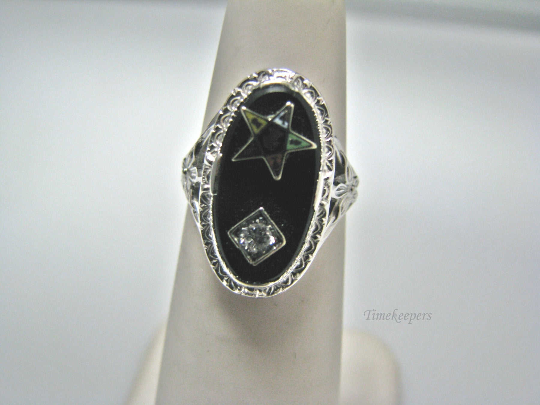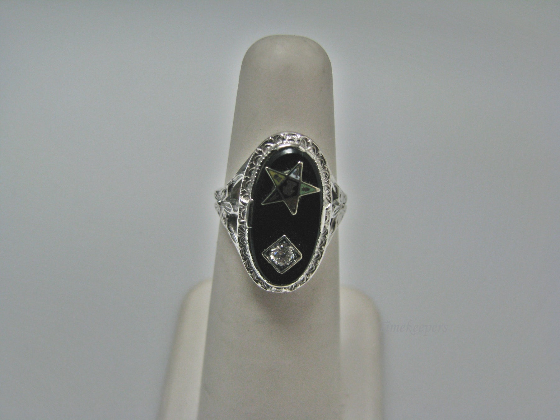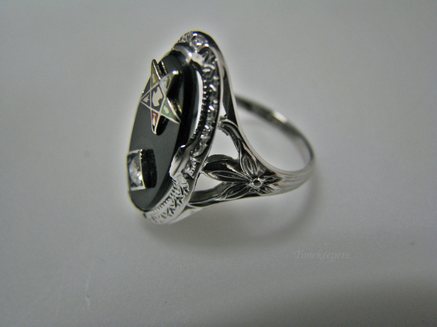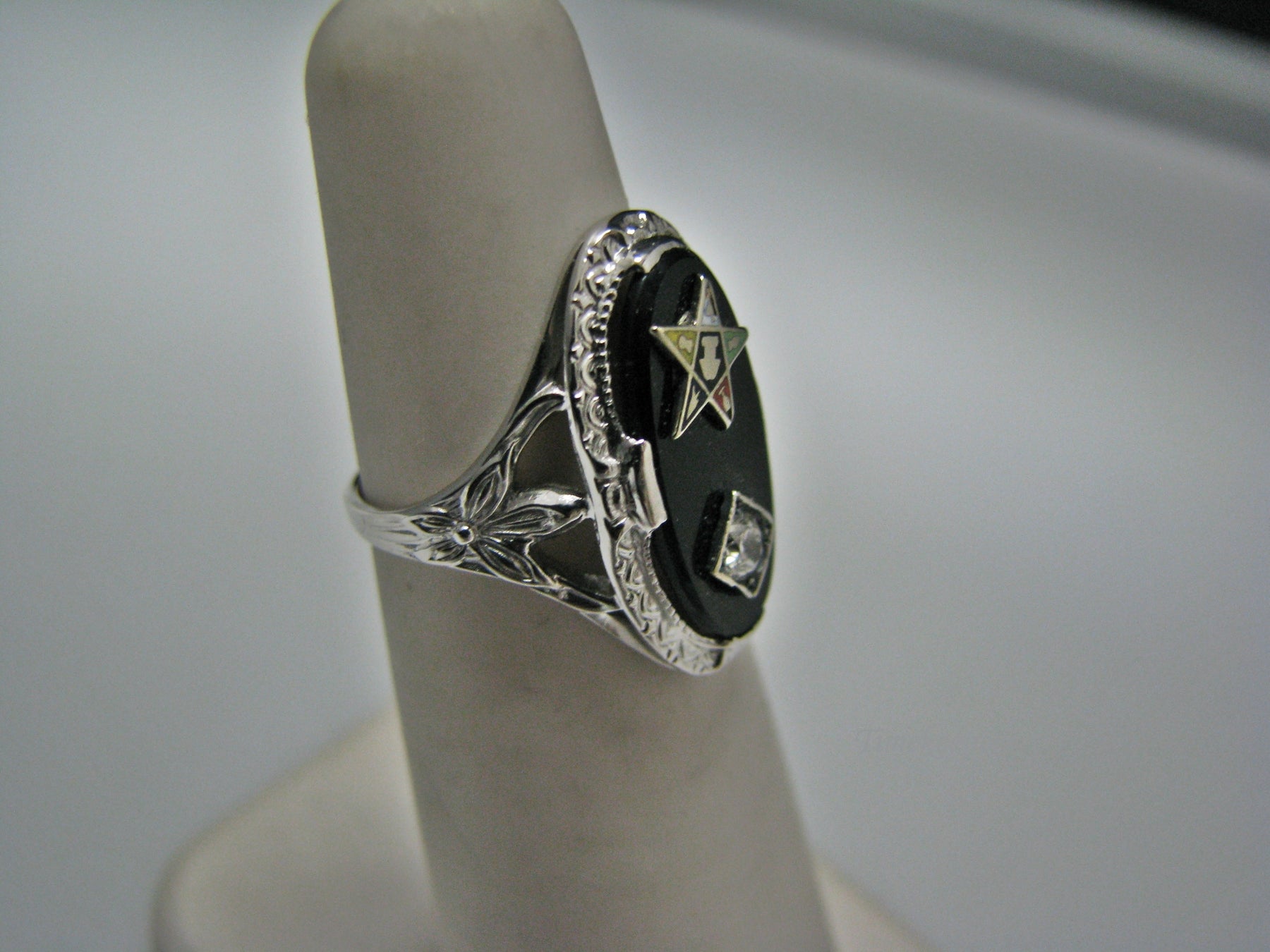 For Sale: (1) H126 Stunning Black Onyx with Diamond and Eastern Star Ring in 18k White Gold
