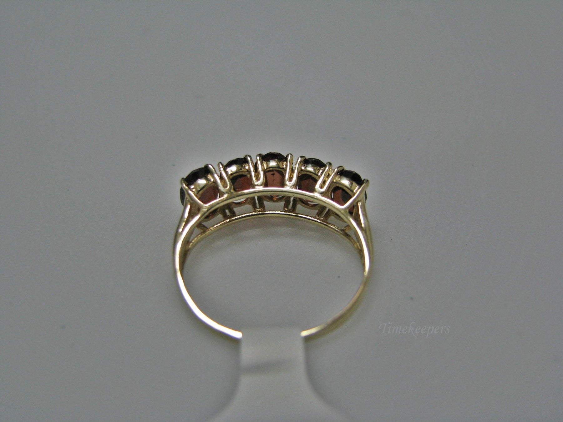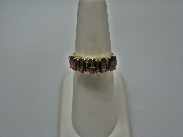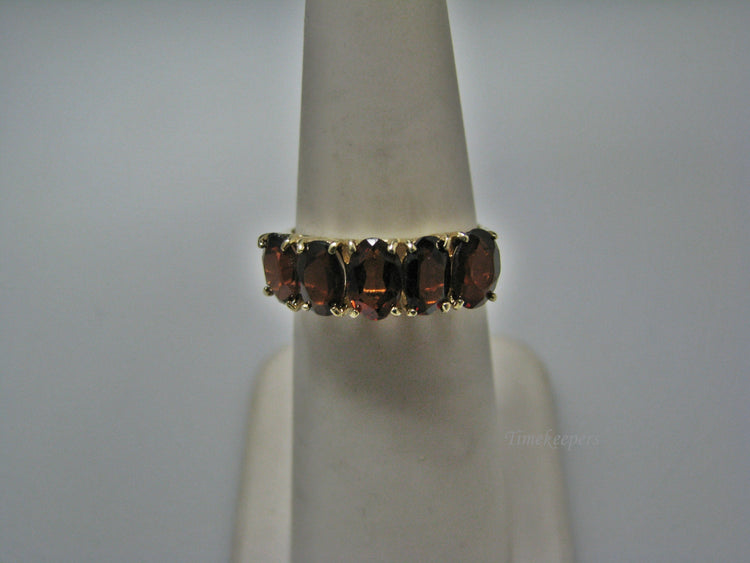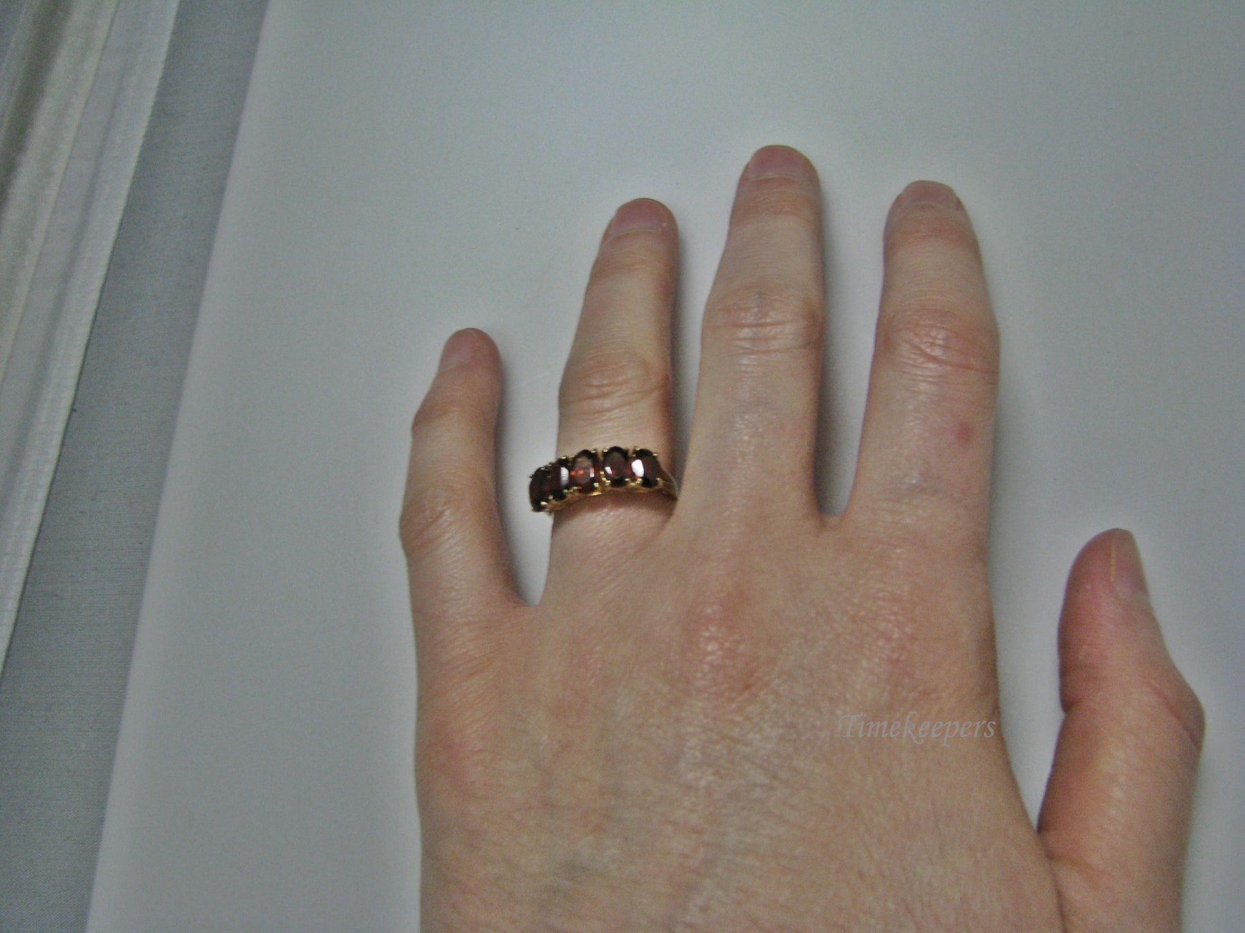 This stunning ring features 5 lovely oval shaped red stone next to each other. The inside of this ring is marked 14k gold. A beautiful piece.