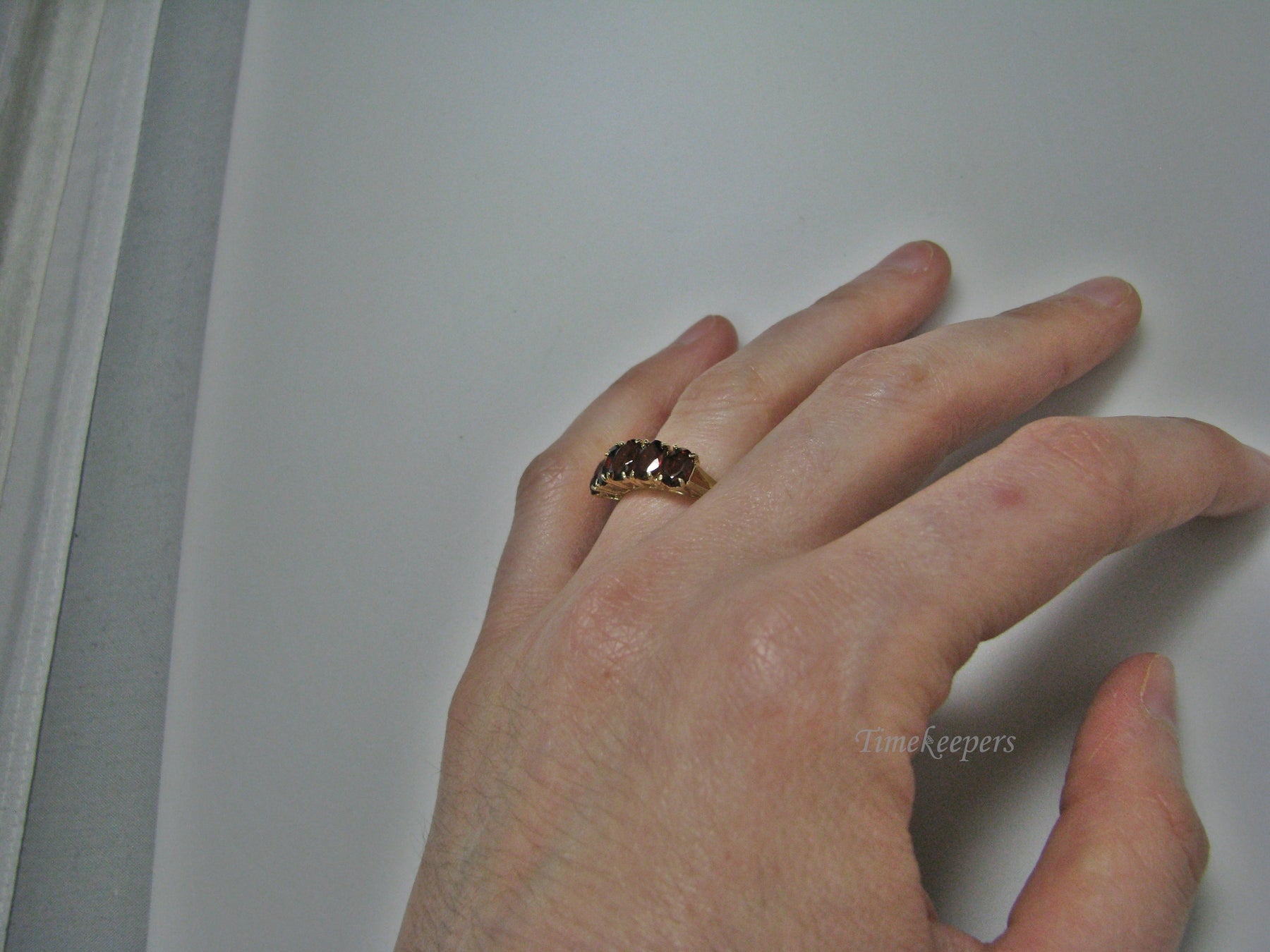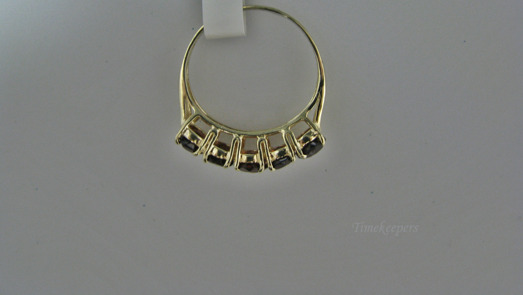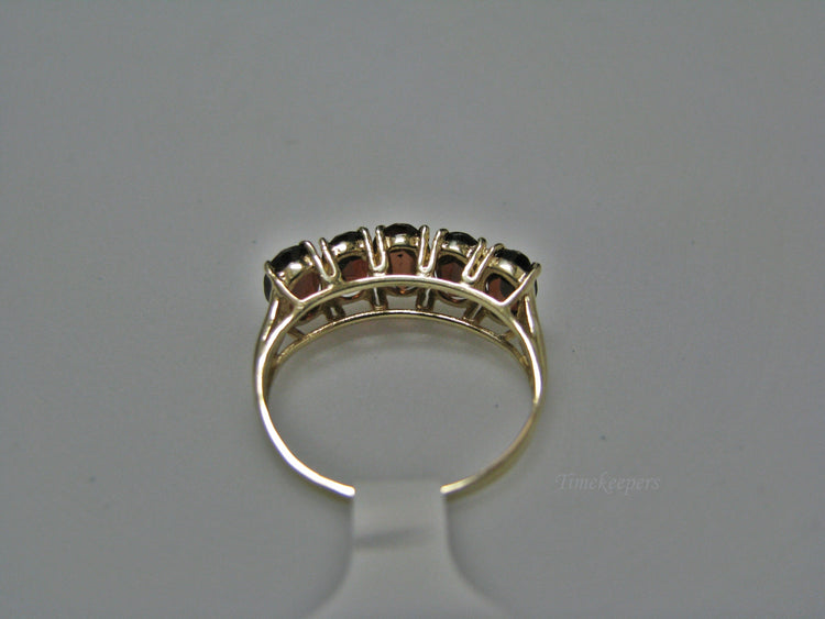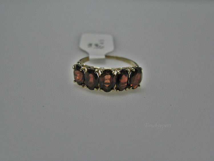 This stunning ring features 5 lovely oval shaped red stone next to each other. The inside of this ring is marked 14k gold. A beautiful piece.