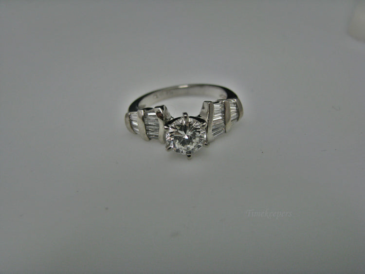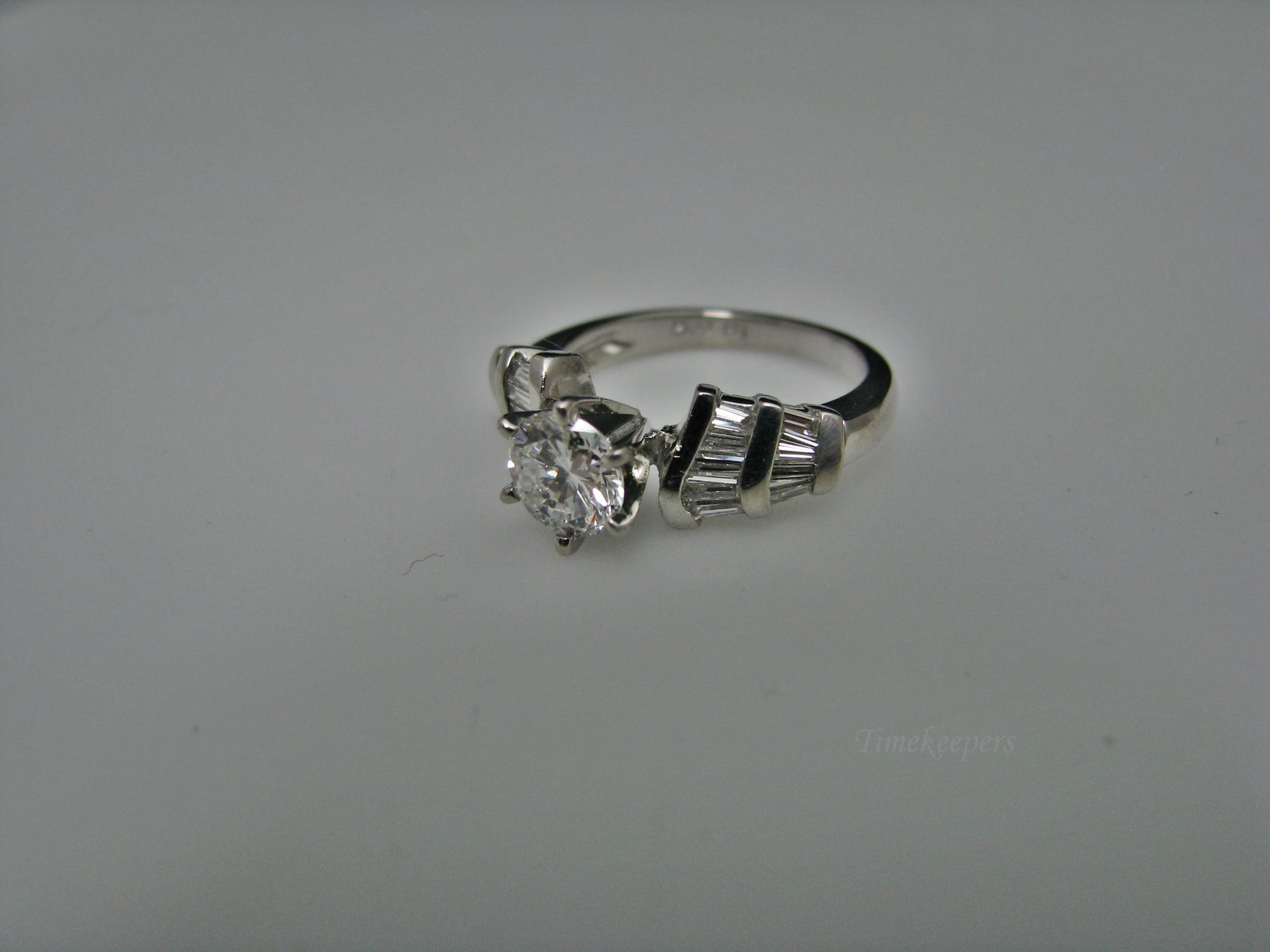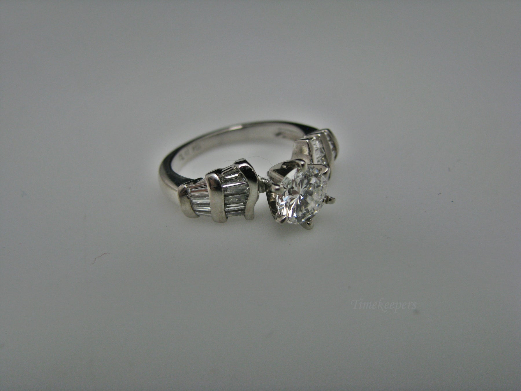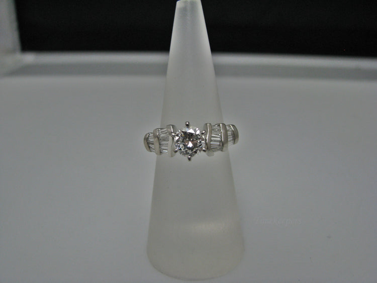 Specifics: Platinum Center Diamond is 0.89ct Diamonds clarity is SI3 (G-H) Tapered Baguettes are approx. 0.025ct each Mounting is 0.50 cts Total weight of ring 6.6 grams