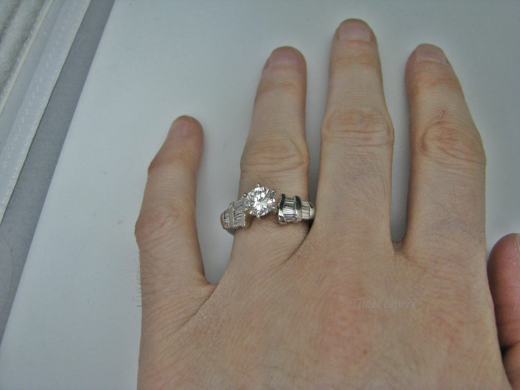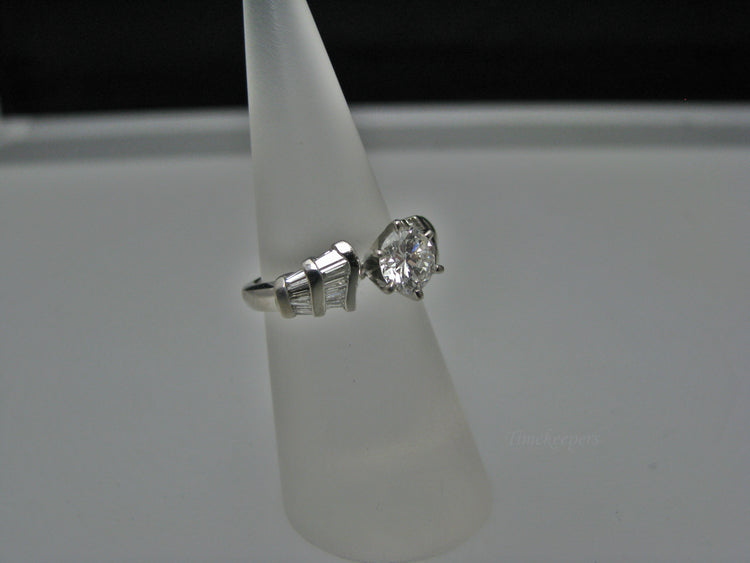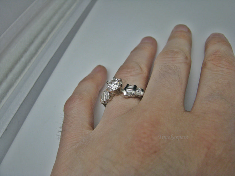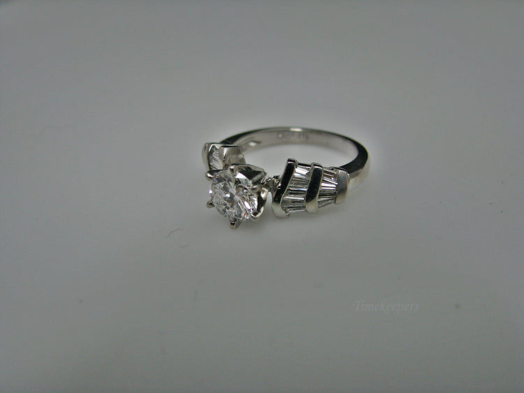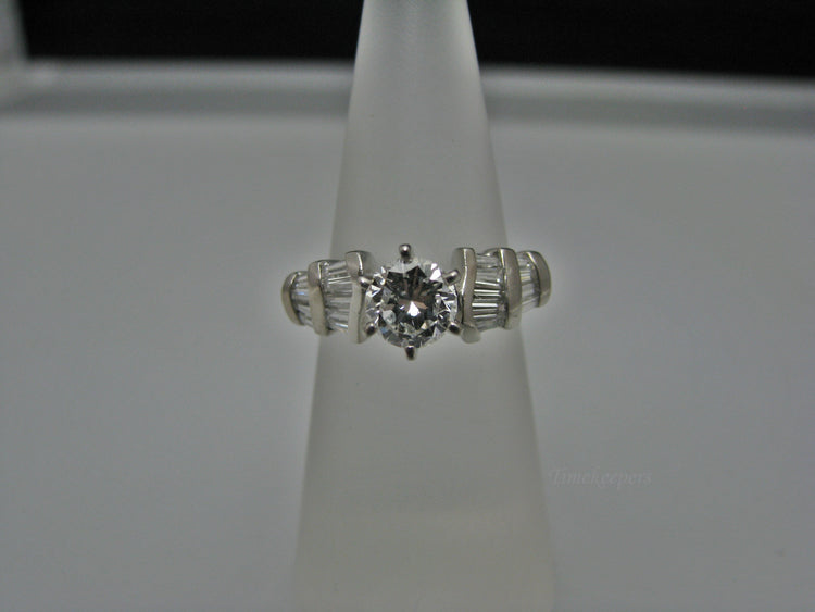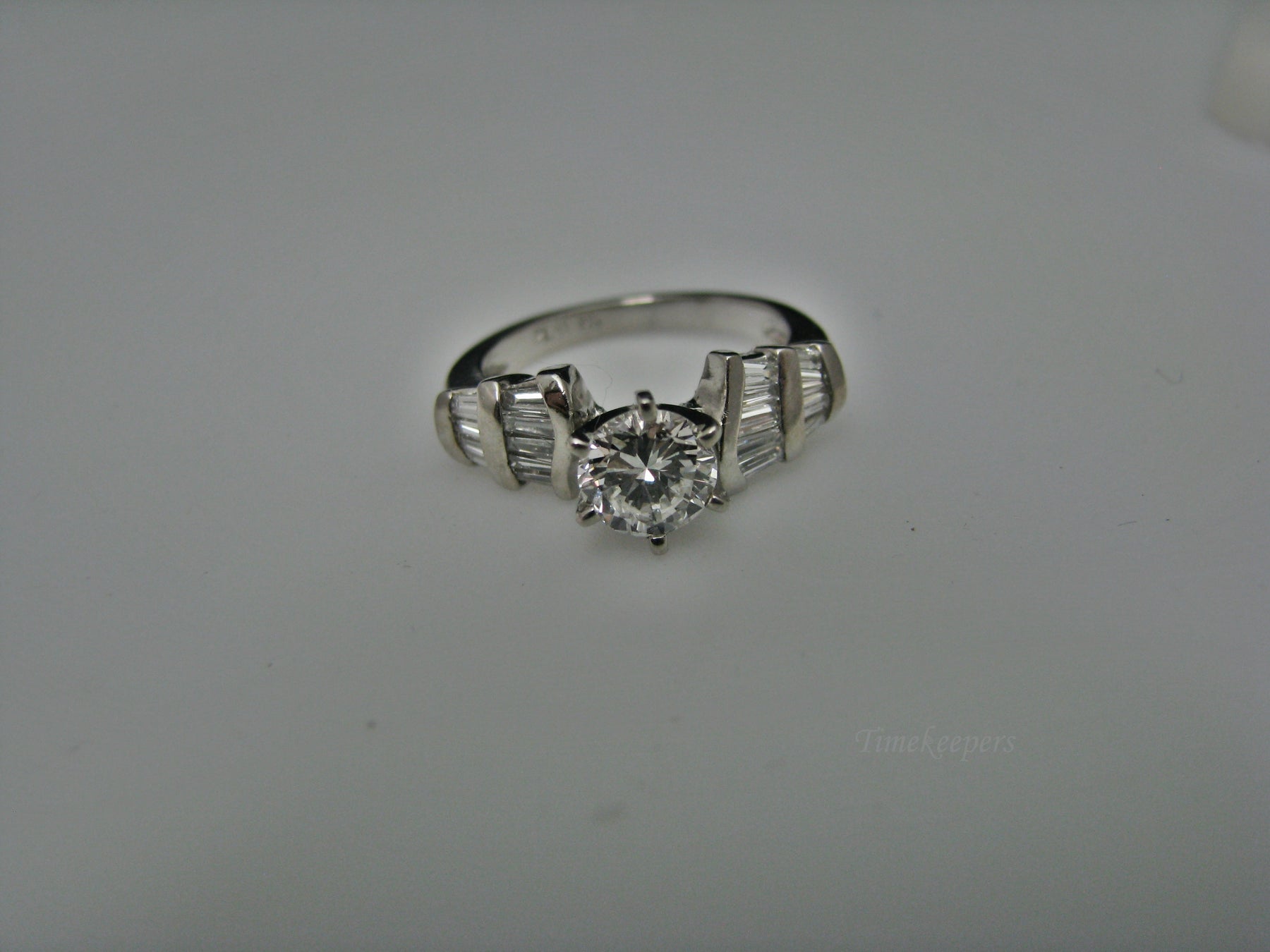 Specifics: Platinum Center Diamond is 0.89ct Diamonds clarity is SI3 (G-H) Tapered Baguettes are approx. 0.025ct each Mounting is 0.50 cts Total weight of ring 6.6 grams