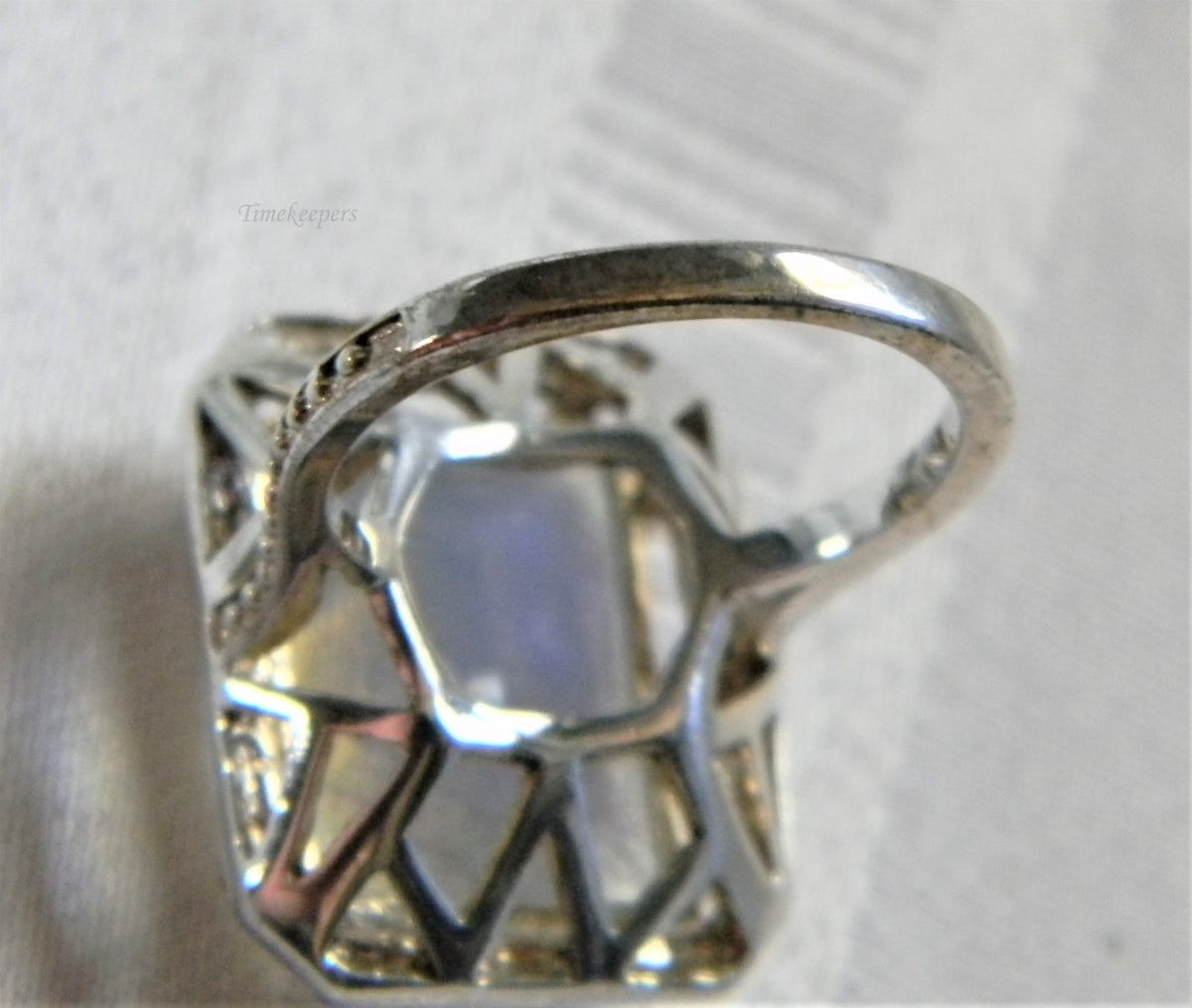 For Sale: (1) Sterling Silver Ring with Iridescent Glass Stone in a Silver Frame