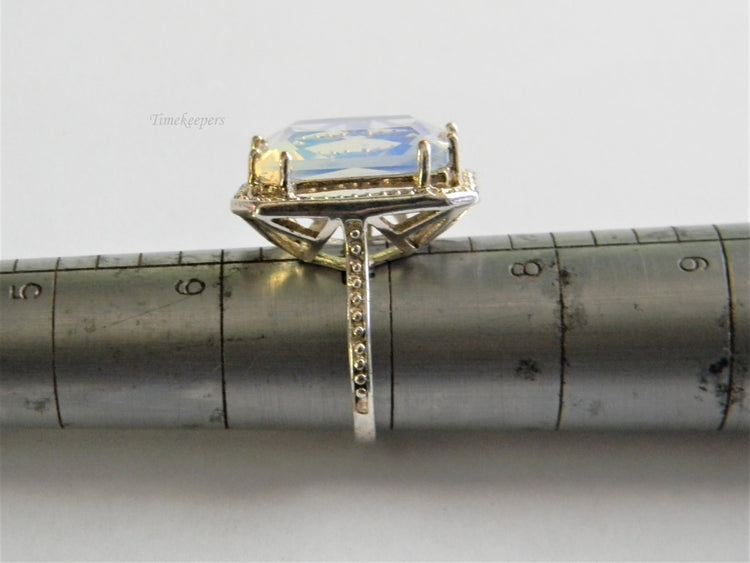 h955 Sterling Silver Ring with Iridescent Glass Stone in a Silver Frame