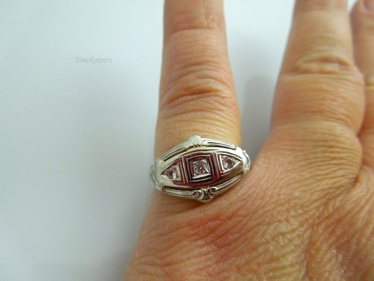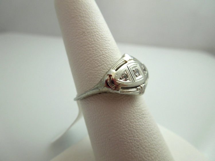 For Sale: (1) k591 Lovely Antique Art Deco 18kt White Gold 3 Diamond Ring Size 6.25