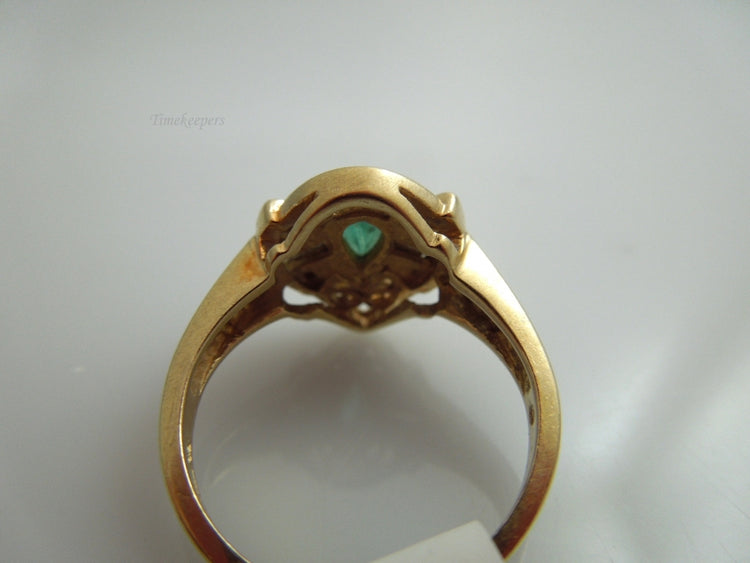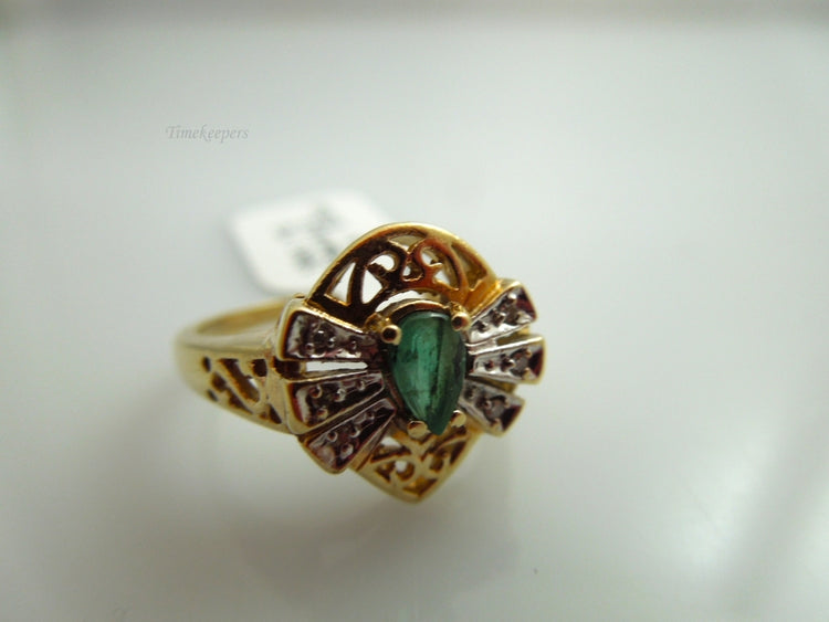For Sale: (1) k592 Ladies Pretty Emerald and Diamond Ring in 10kt Yellow Gold Size 5