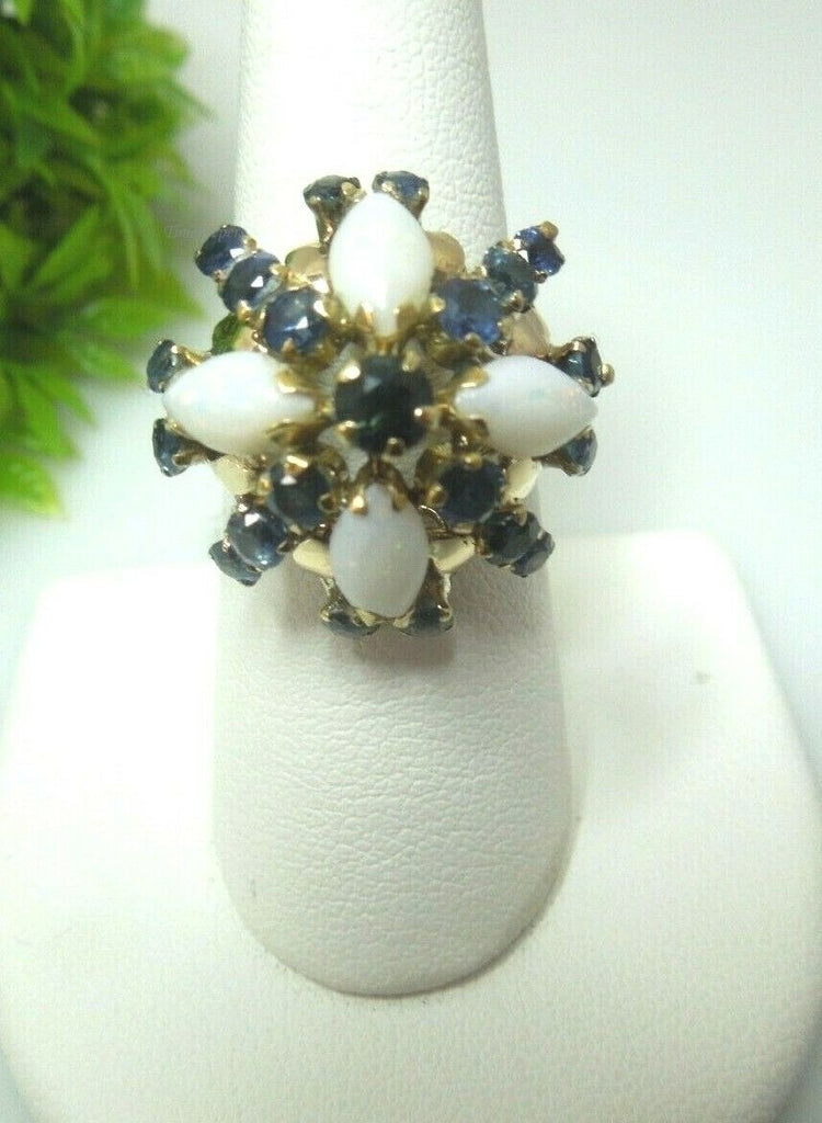 For Sale: (1) q510 Gorgeous 14kt Yellow Gold Opal Blue Spinel Ring Size 8(USA)