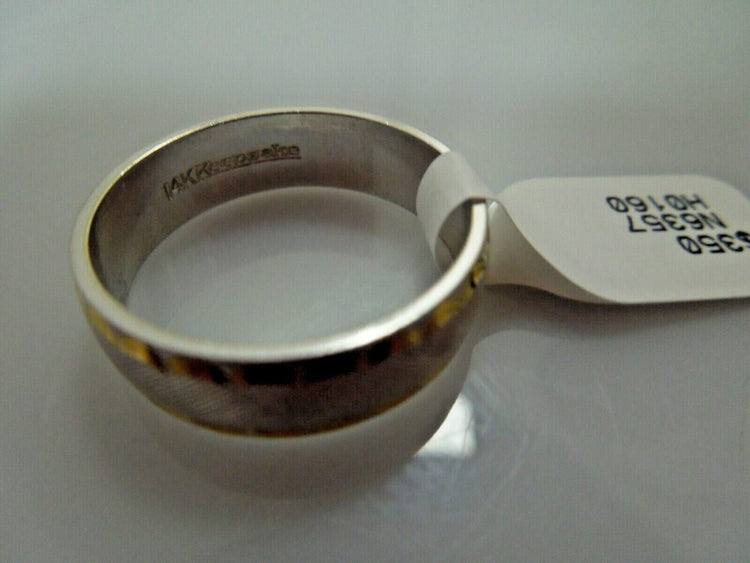 r505 Vintage 14k White Yellow Gold Etched Wedding Band Size 9.75(USA) Signed