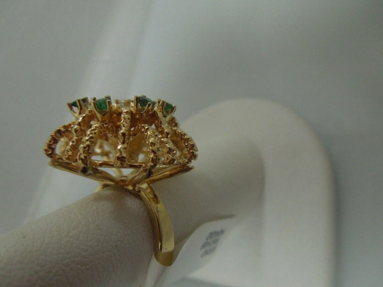 r509 Vintage 14k Yellow Gold Dome Emerald Diamond Ring Size 5.5(USA) Signed