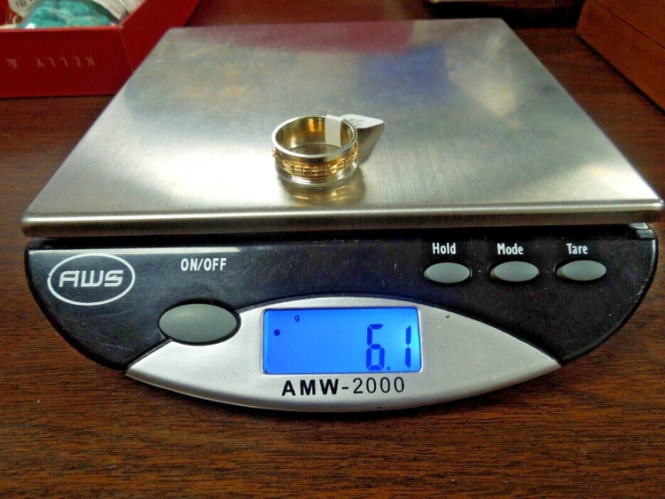 Metal : 14kt Rose White Gold Size : 9.5 Weighs : 6.1 g Stamped : Yes,14k Shank measures : 8.36 mm