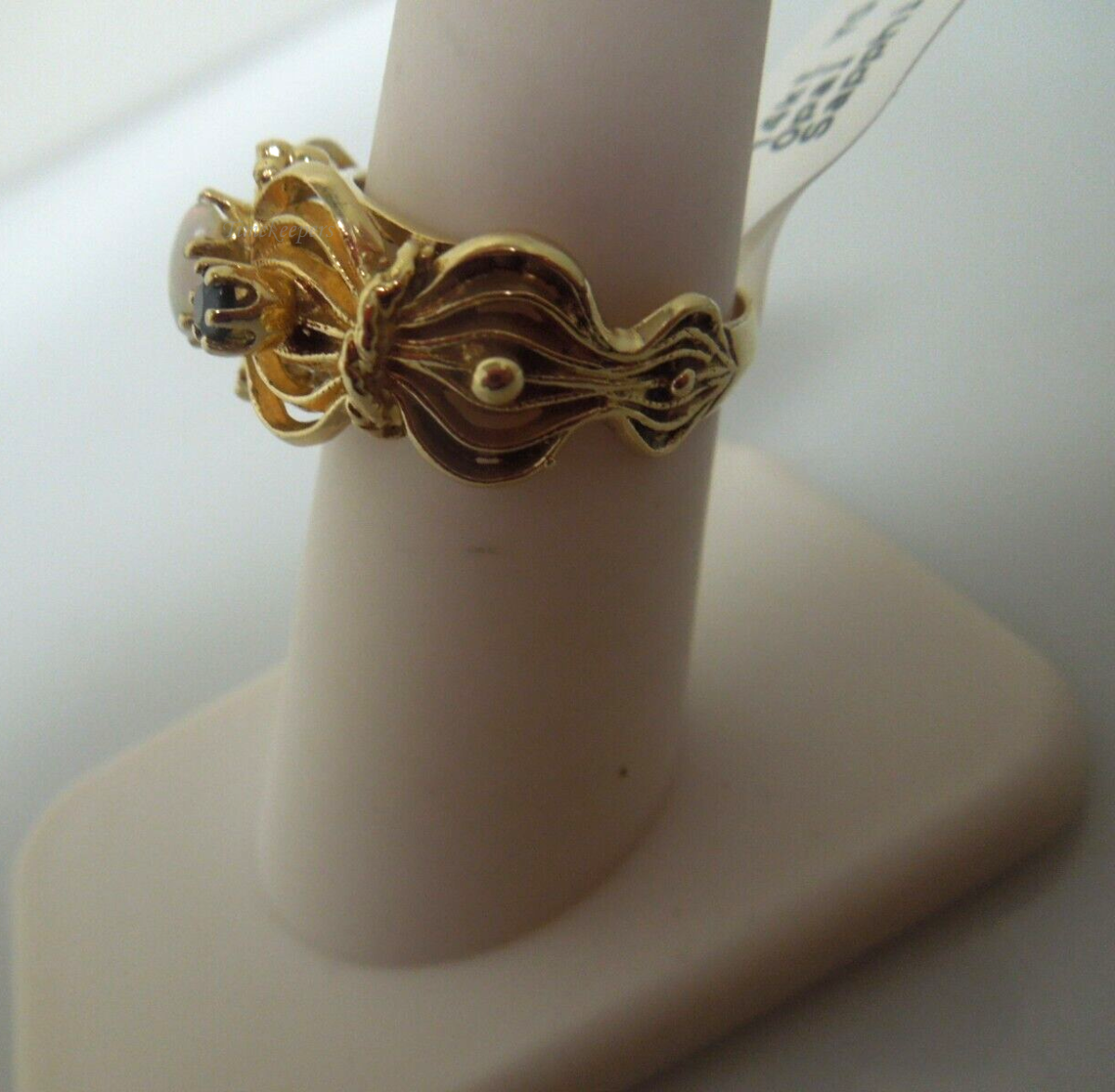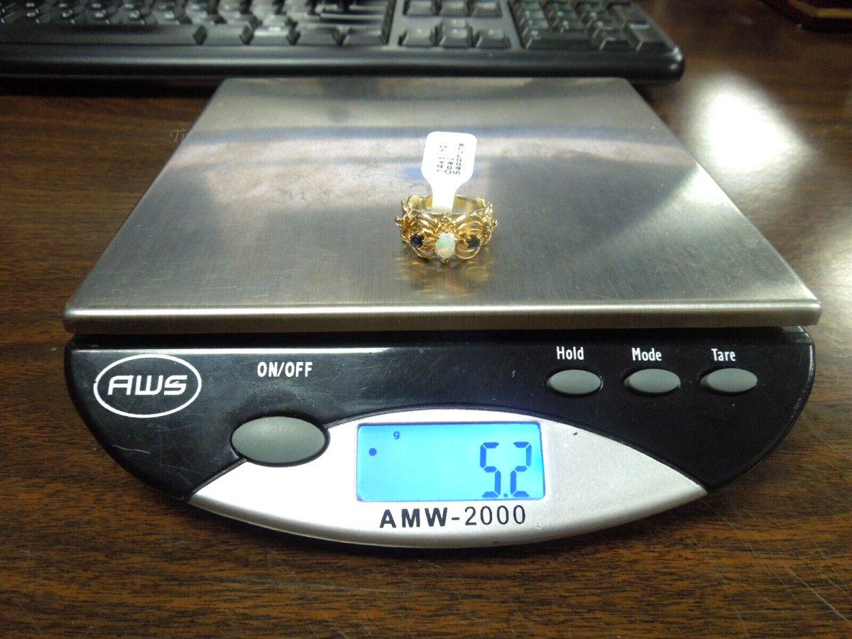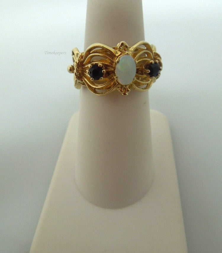 s170 14kt Yellow Gold Opal Sapphire Statement Ring Size 7