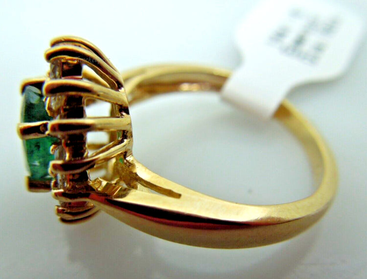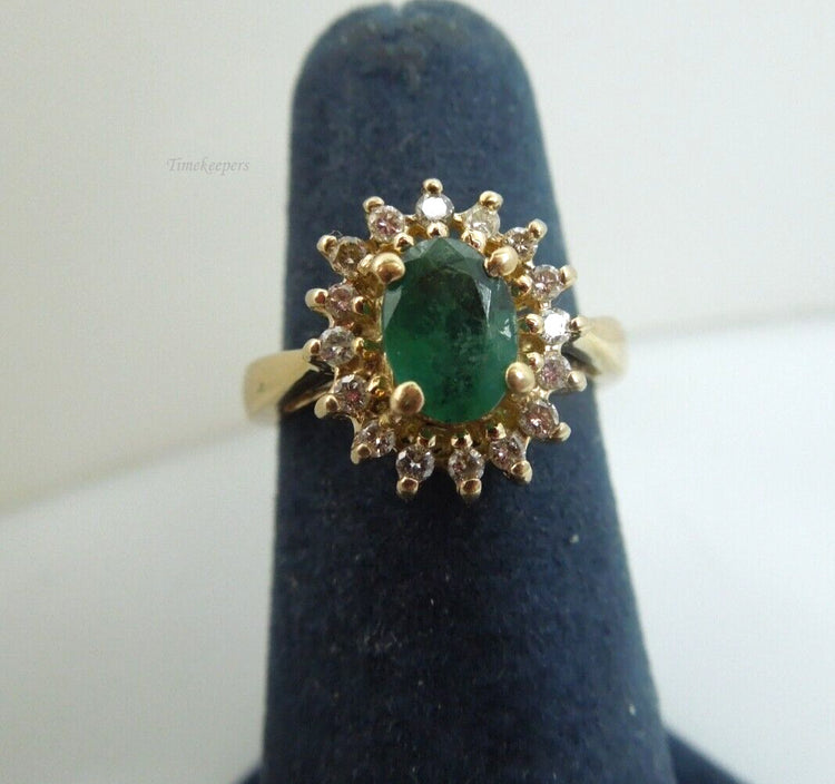 s862 14kt Yellow GOld Emerald Diamond .16cts Ring Size 5(US)