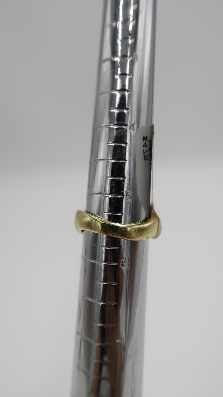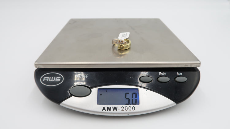 Made of solid 14 karat white yellow gold, with the piece comprising one single type of metal, has 0.05 TDW Diamond.