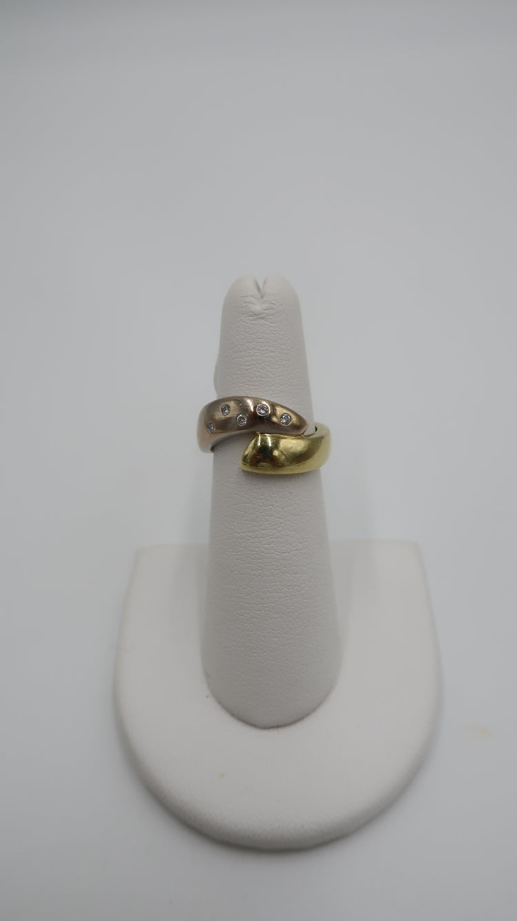 For Sale: (1) t528 14k White Yellow Gold By-pass Diamond Ring,14k Gold Ring
