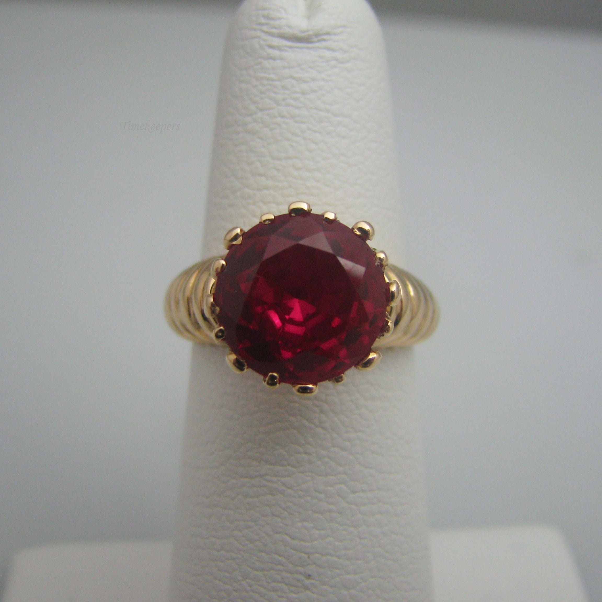 d939 Stunning 14k Yellow Gold Synthetic Ruby Ring