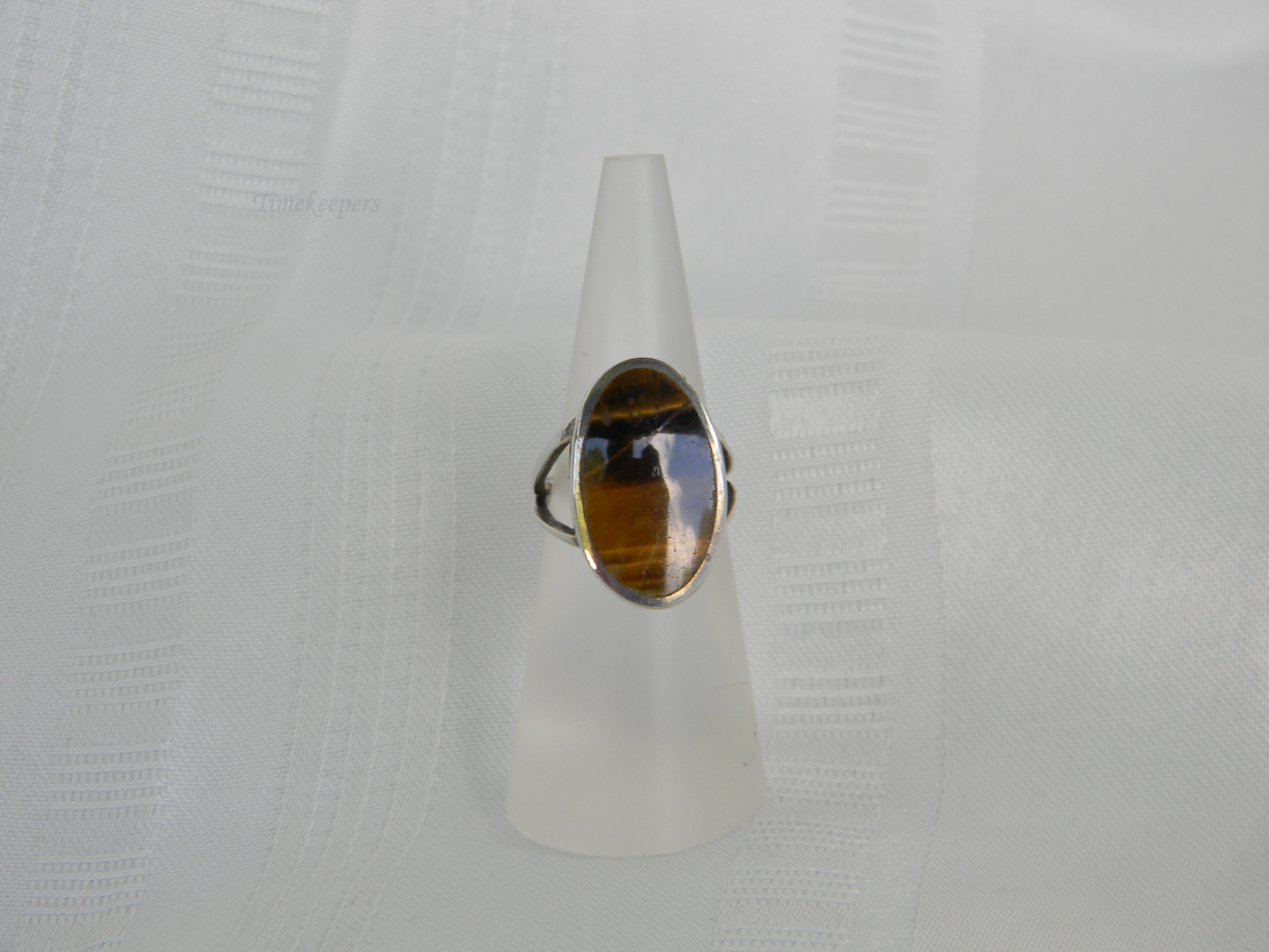 j981 Pretty Vintage Sterling Silver Ring with Tiger eye Stone Size 5