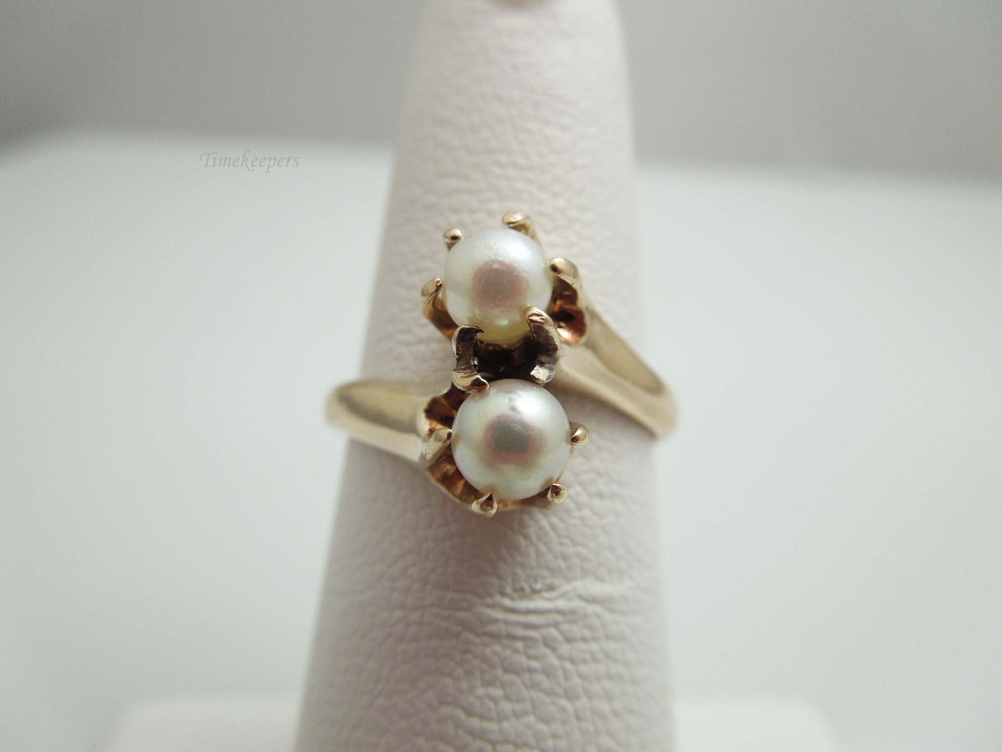 g624 Classic Vintage Ladies 14kt Rose Gold Double Pearl Ring Size 5.75