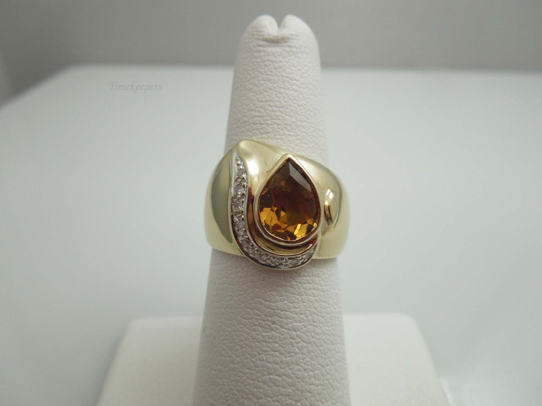 g625 Unique Ladies 14k Yellow Gold Citrine and Diamond Cocktail Ring Size 6.25