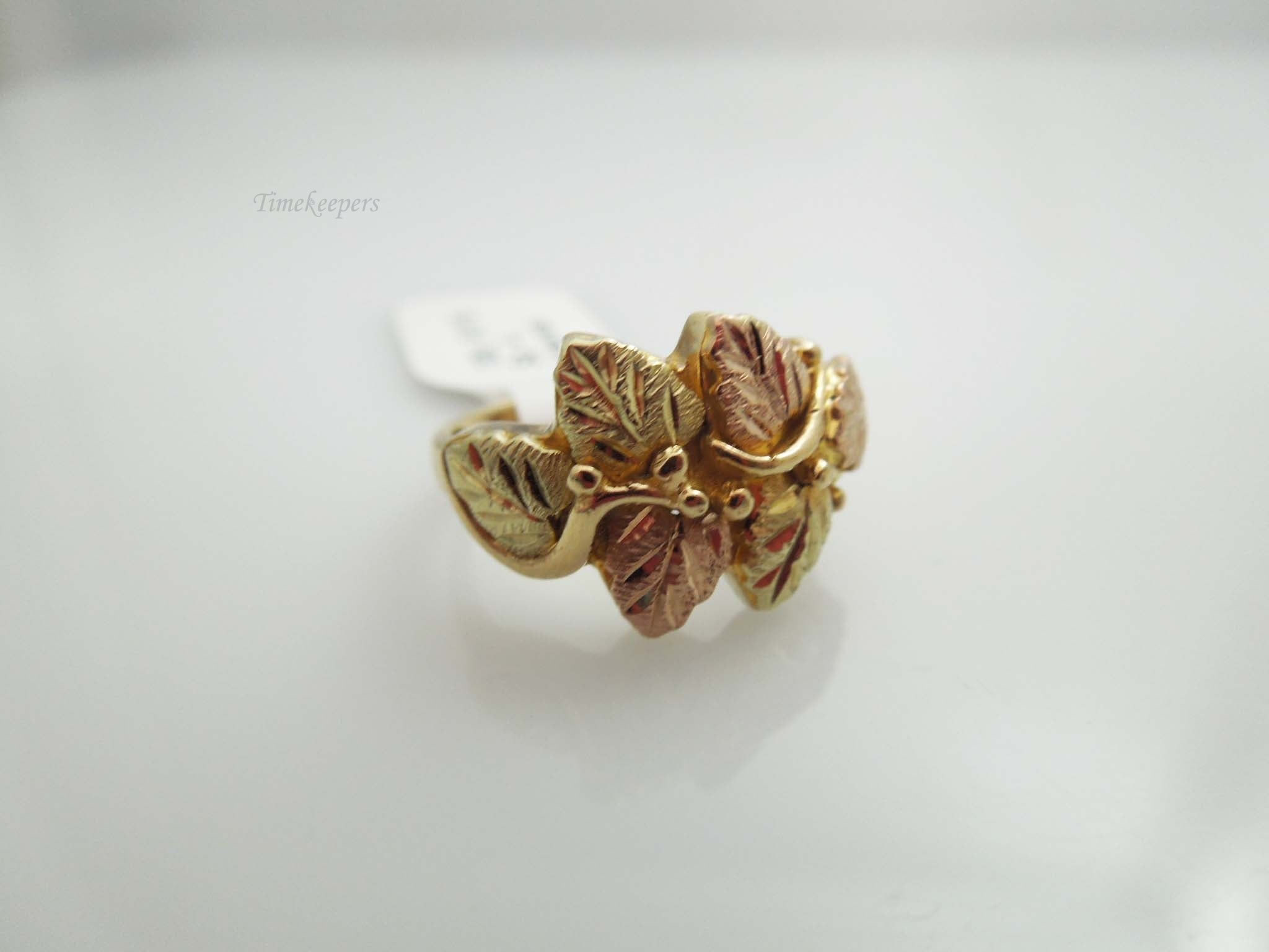 g720 Lovely Ladies 10kt Yellow and Rose Gold Diamond Cut Leaves Ring