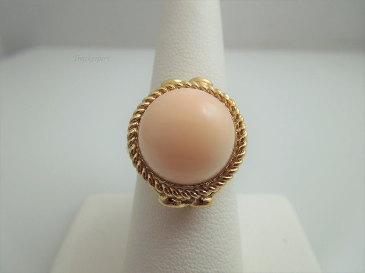 g963 Lovely Ladies Vintage Cabochon Coral Ring in 14kt Yellow Gold