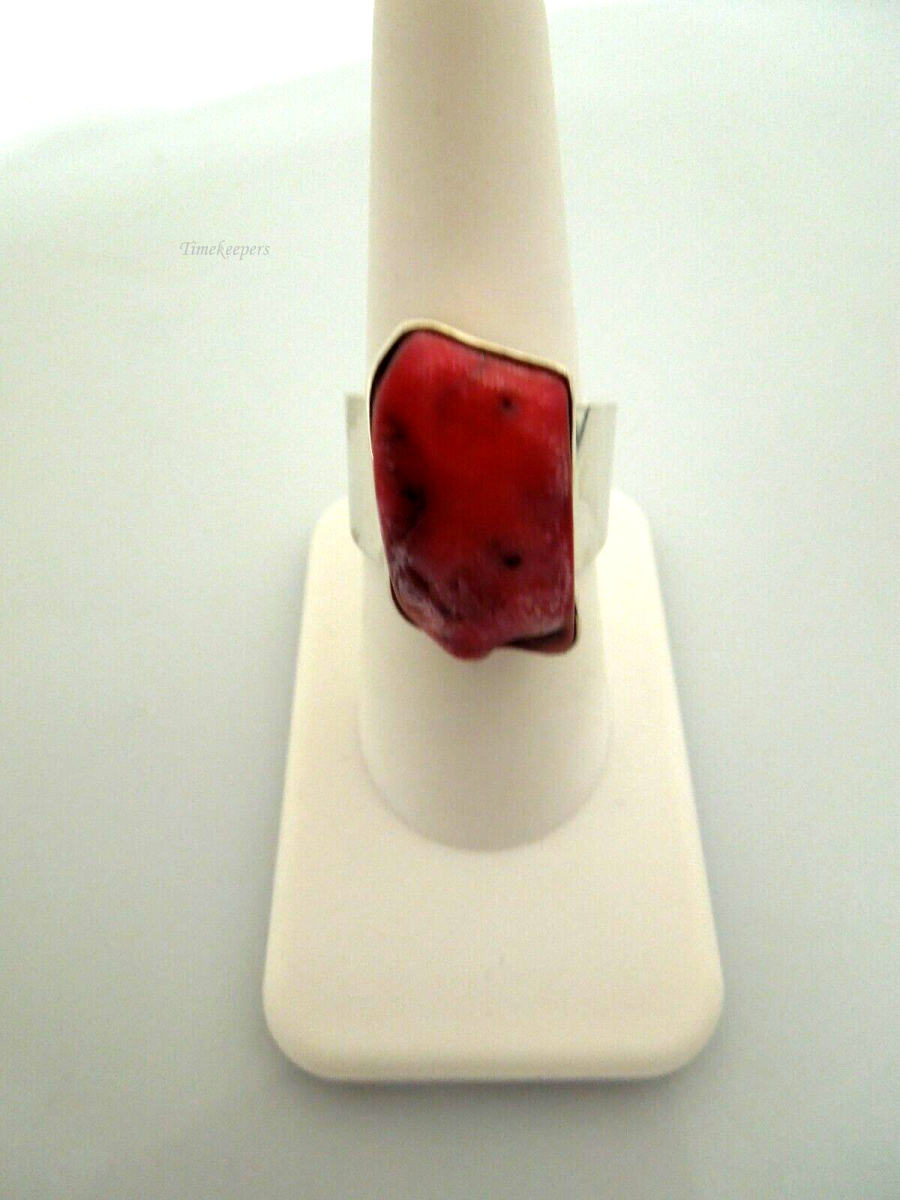 s079 Vintage Sterling Silver Deep Red Coral Stone Ring 8/14.4g