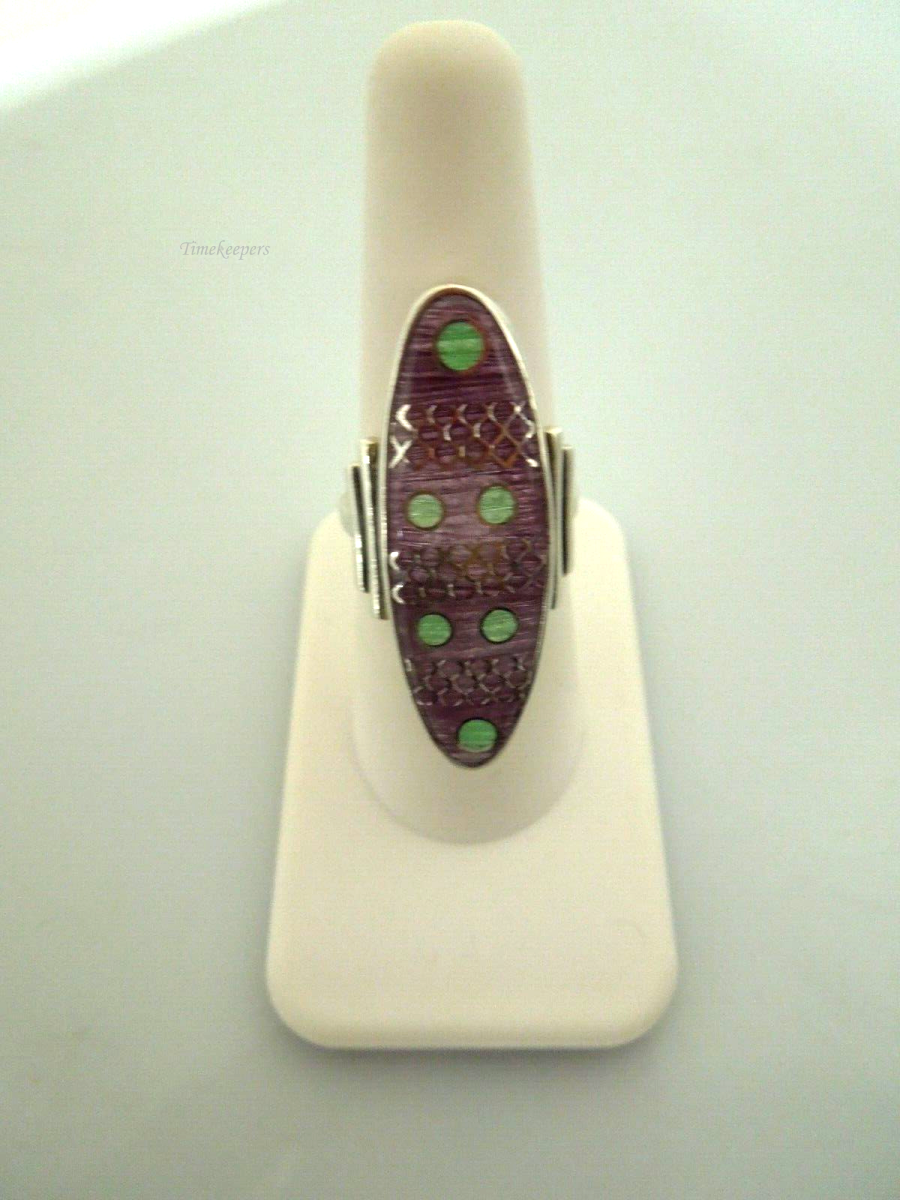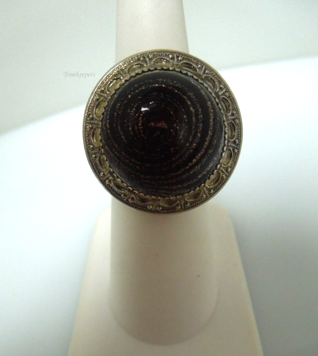 s081 Vintage Sterling Silver Big face Enamel Ring in Size 7.25