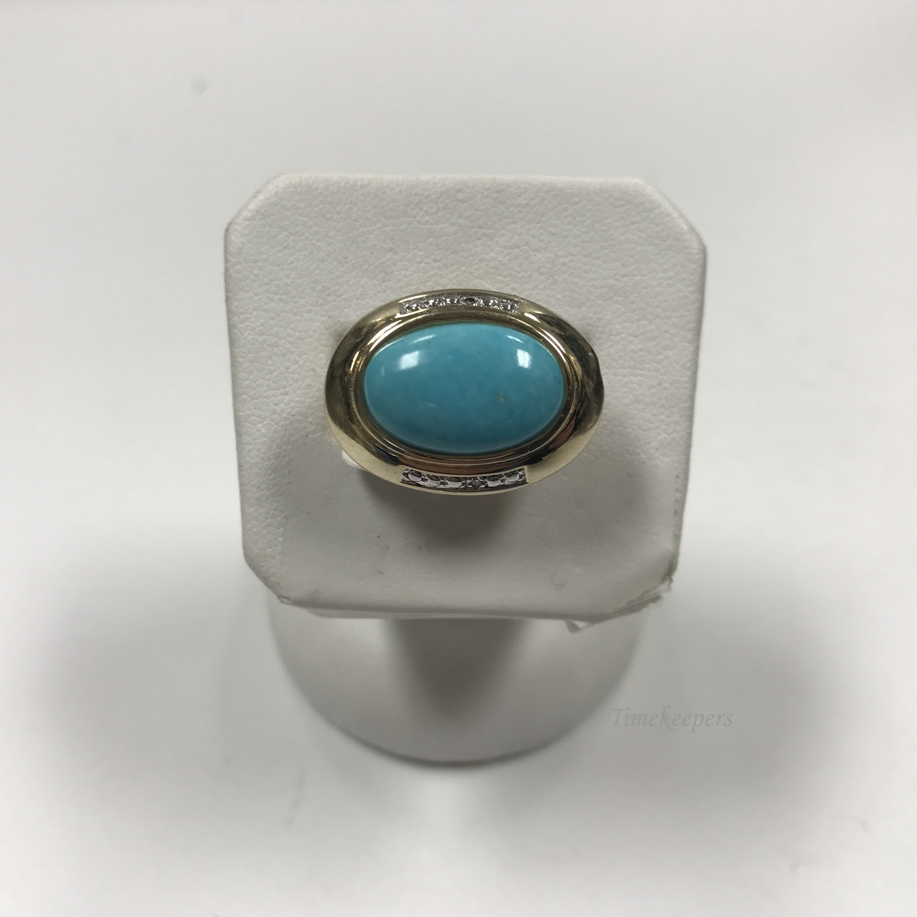 a1089 Vintage Ring w/ Oval Turquoise Stone surrounded by Seed Pearls in 10k YG