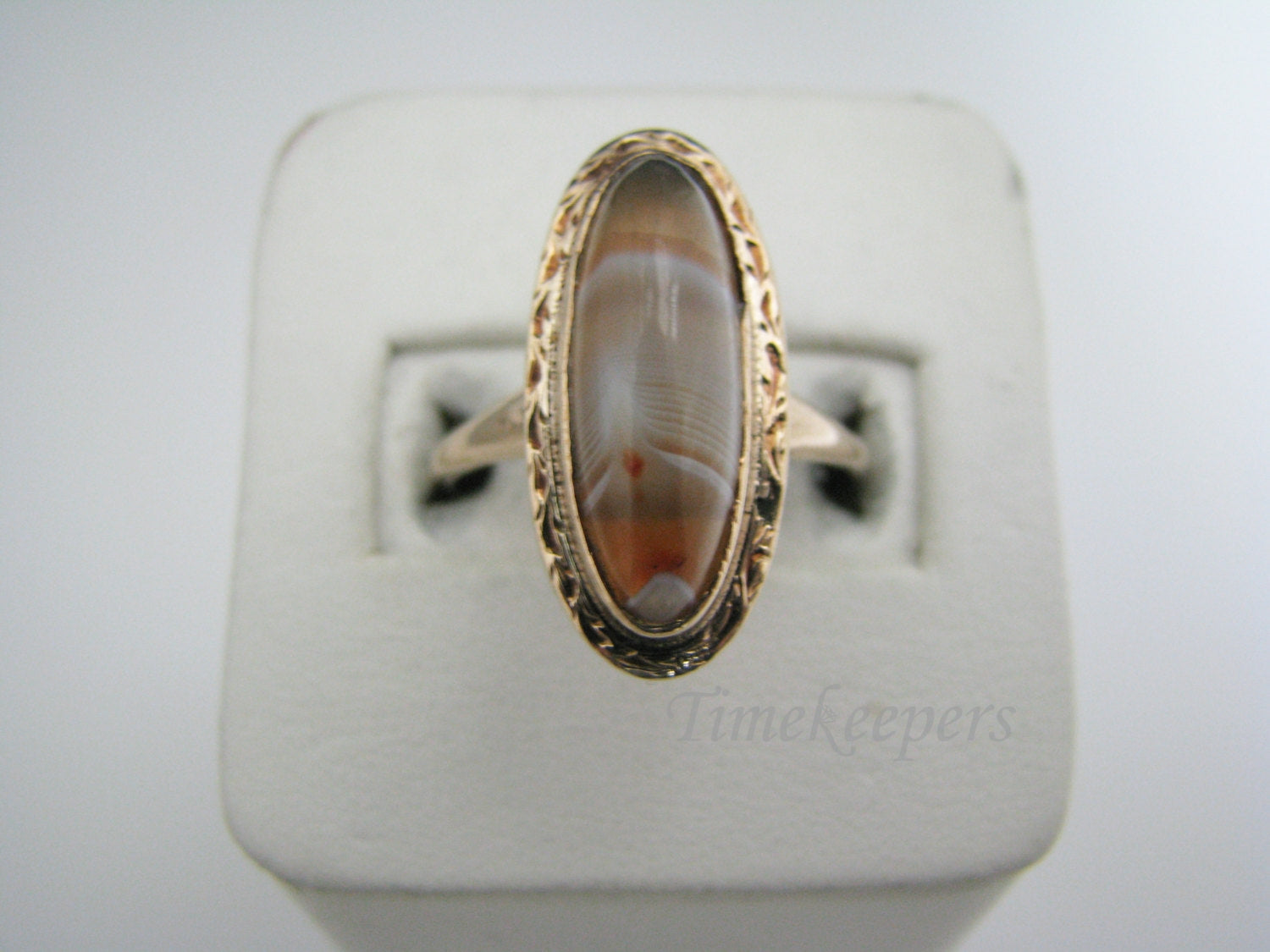 c169 Beautiful Brown and White Agate Ring in 14k Yellow Gold