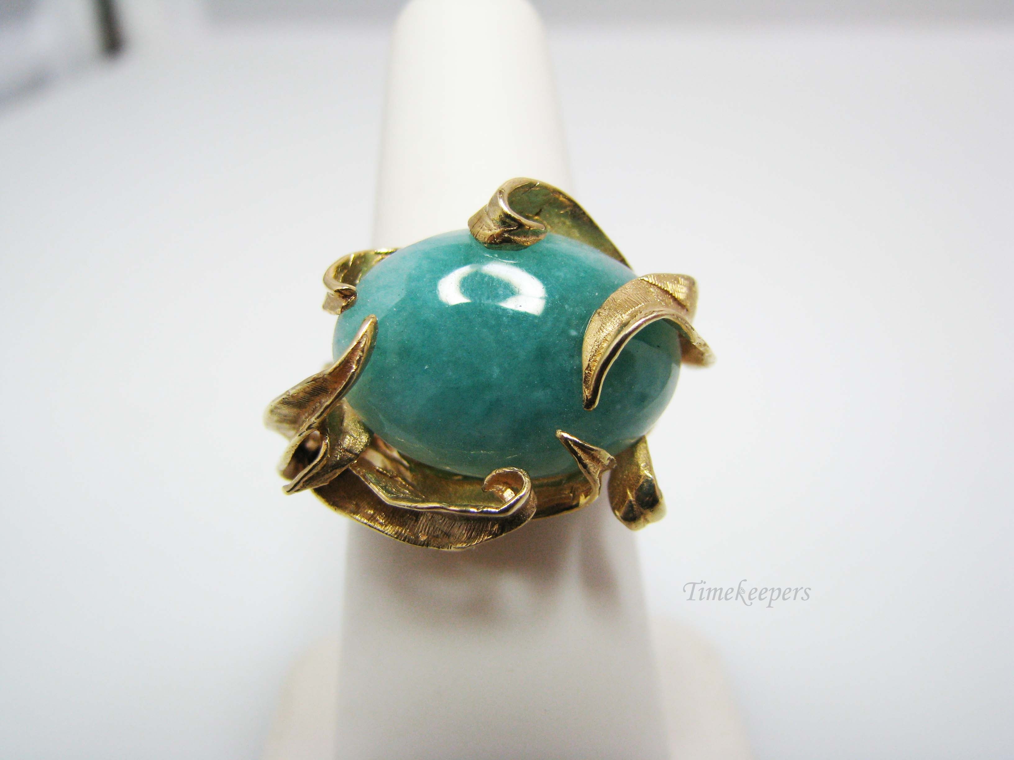 b207 Beautiful 14kt Yellow Gold Jade? ring