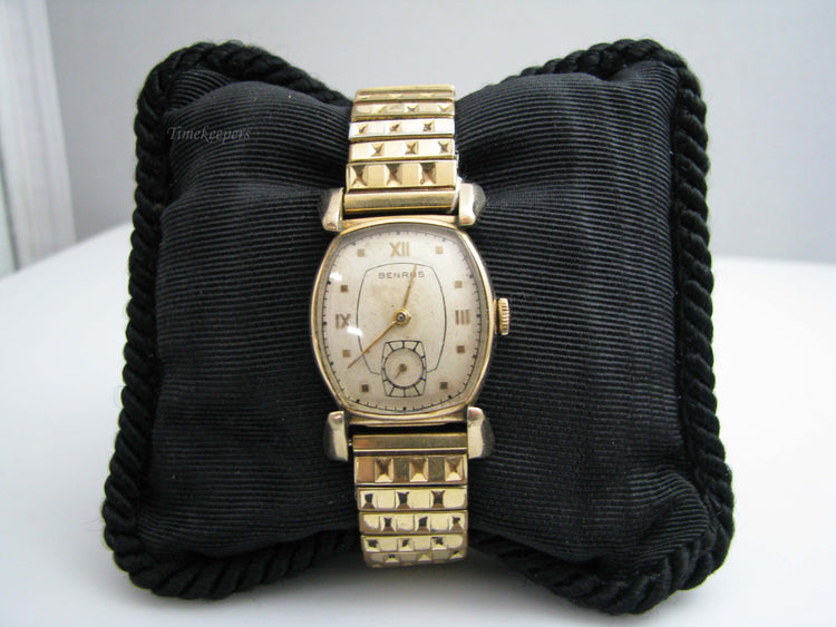For Sale: (1) b577 Ladies 10kt RGP Mechanical Benrus WristwatchPLEASE READ ENTIRE DESCRIPTION BEFORE PURCHASING Ladies mechanical Benrus wristwatch. Has a nice sleek design. Would make a good Anniversary, birthday, Christmas, Mother's Day or Valentine's Day gift. Please see pictures for more details! Specifics: