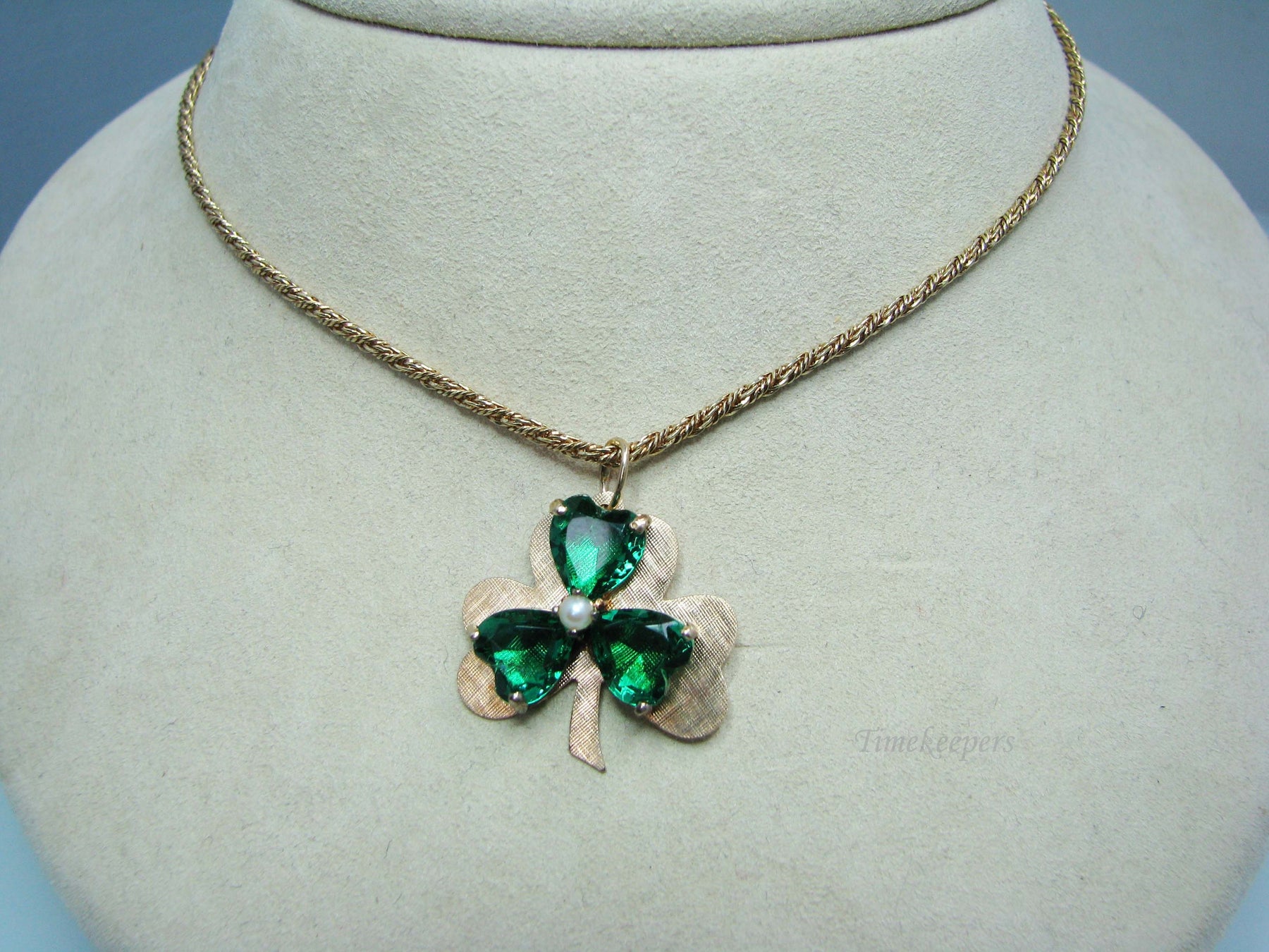 For Sale: (1) B147 14k Yellow gold Clover pendant w/chain