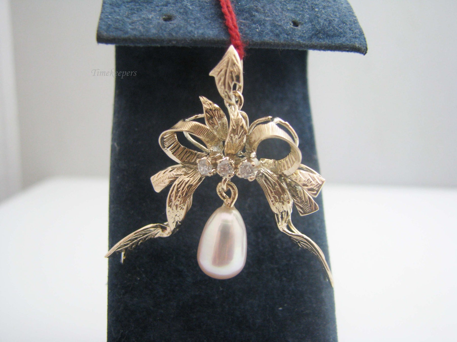 For Sale: (1) b467 Beautiful 10kt Yellow Gold Diamond and Pearl Pendant
