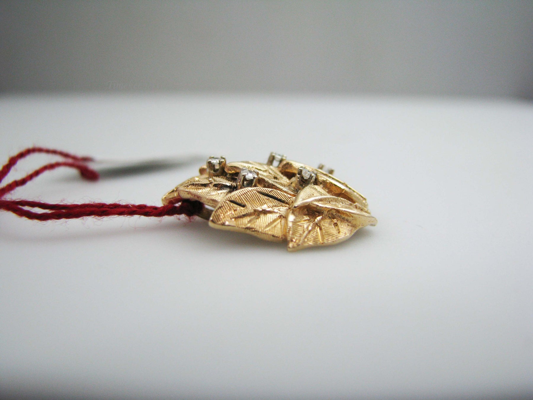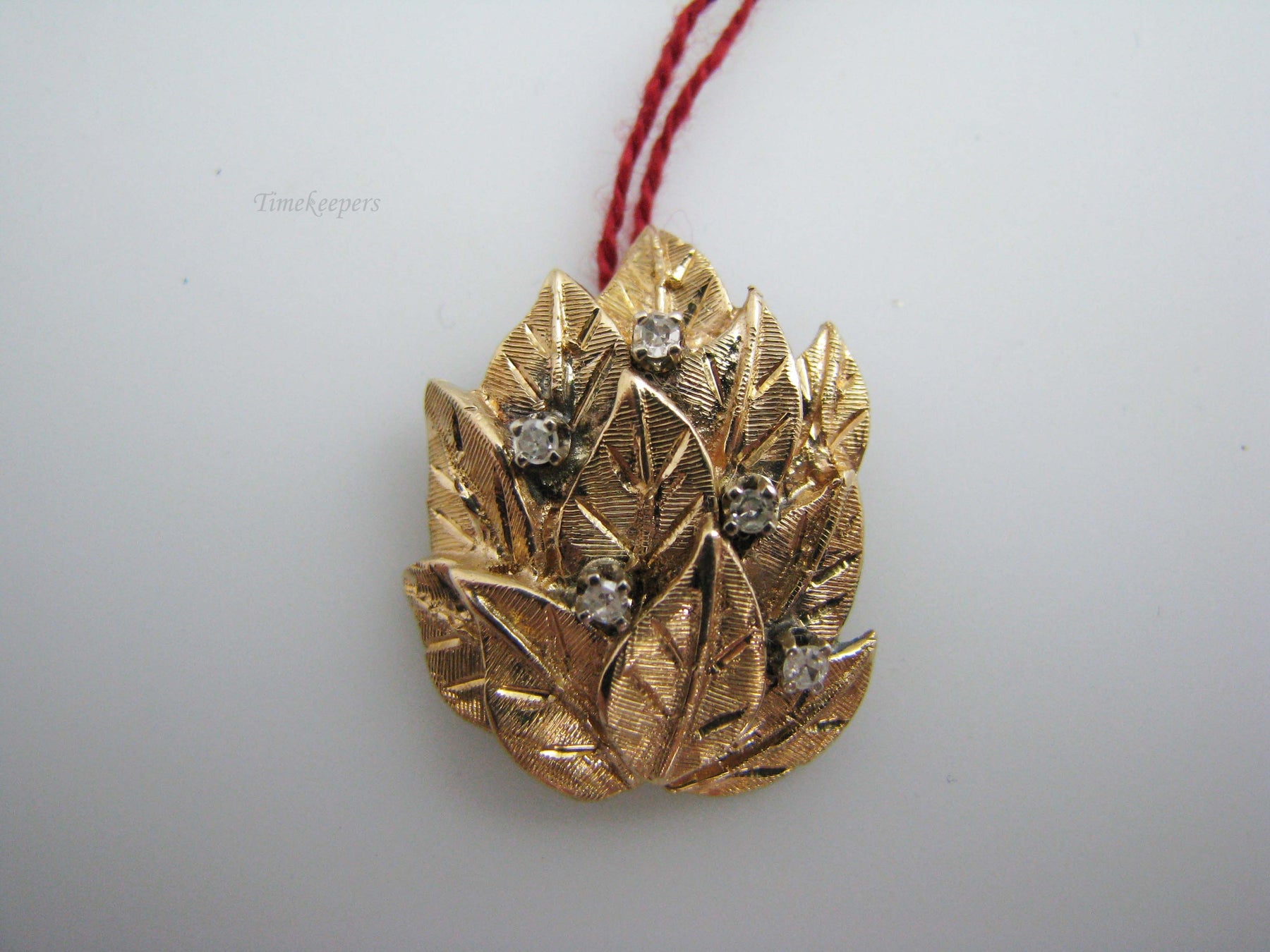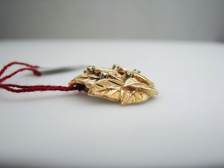 For Sale: (1) b565 Beautiful 14kt Yellow Gold Diamond Leaf Pendant