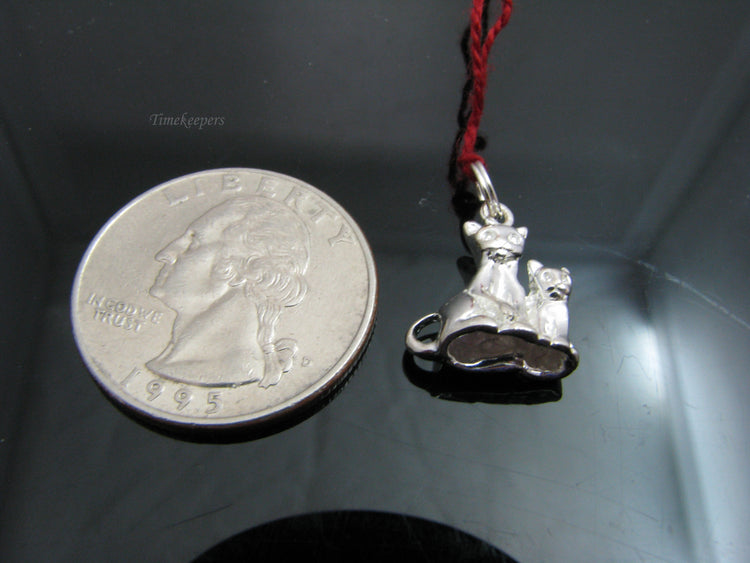 For Sale: (1) b833 Adorable Sterling Silver Mama and Baby Cat Charm or Pendant