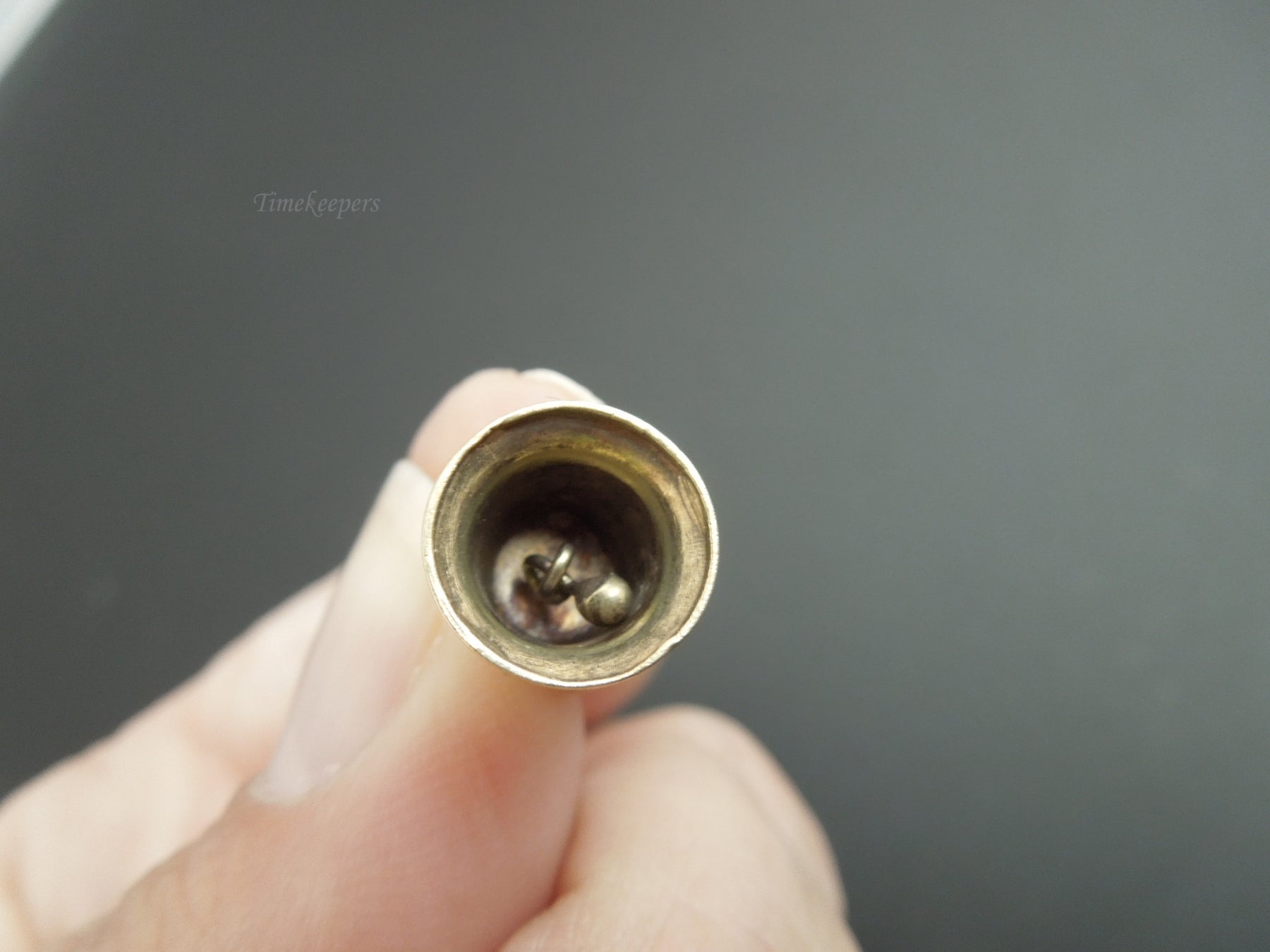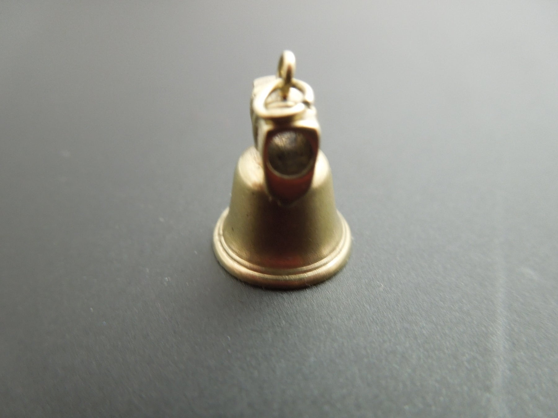 This is a very nice piece that shows little wear. Tiny, little 14kt bell charm that actually jingles. Stamped 14k on the bail. Perfect little charm for your charm bracelet or necklace.